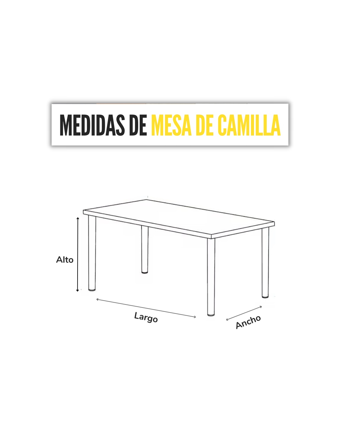 Confeccionada sin pliegues para mantener el calor de manera eficiente. Favorece la retención de la temperatura impidiendo escapar el calor cuando nos sentamos en la mesa y nos cubrimos con ella. Gracias a nuestro diseño la falda de mesa camilla caerá cubriéndono los laterales e impidiendo que escape el calor.