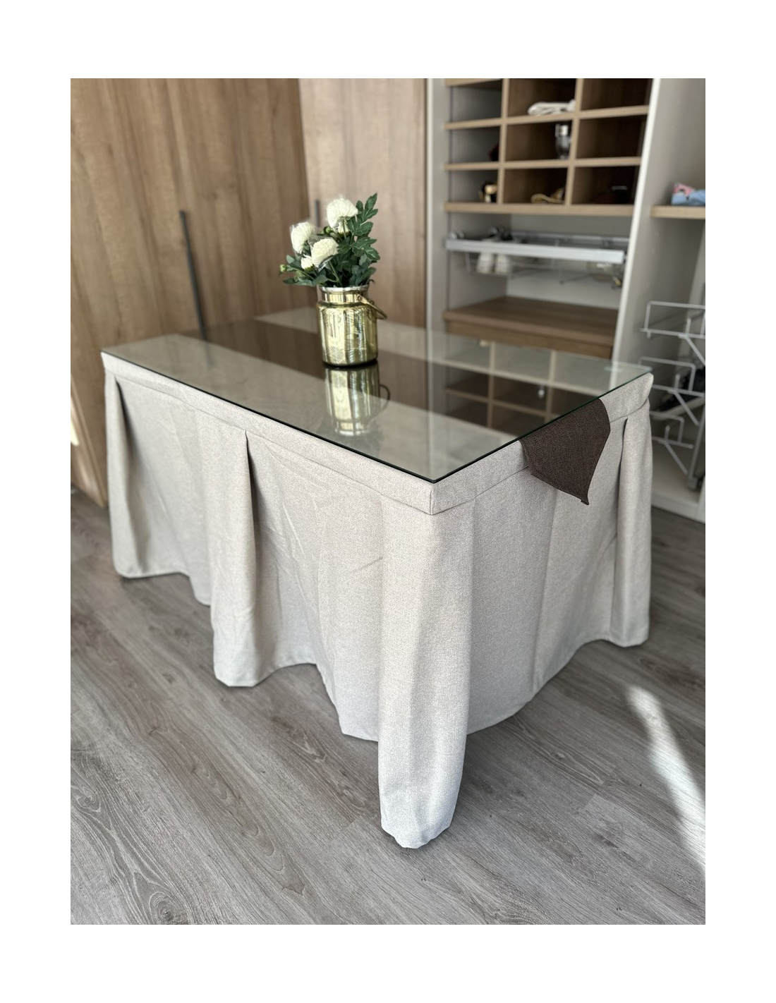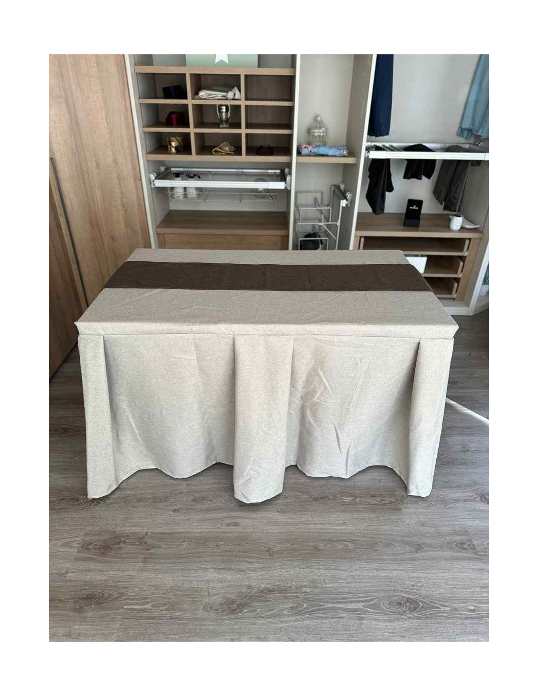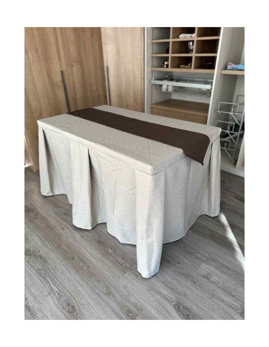Pack Mesa + Ropa de Mesa Camilla Moderna Antimanchas color Beige con Camino Chocolate
