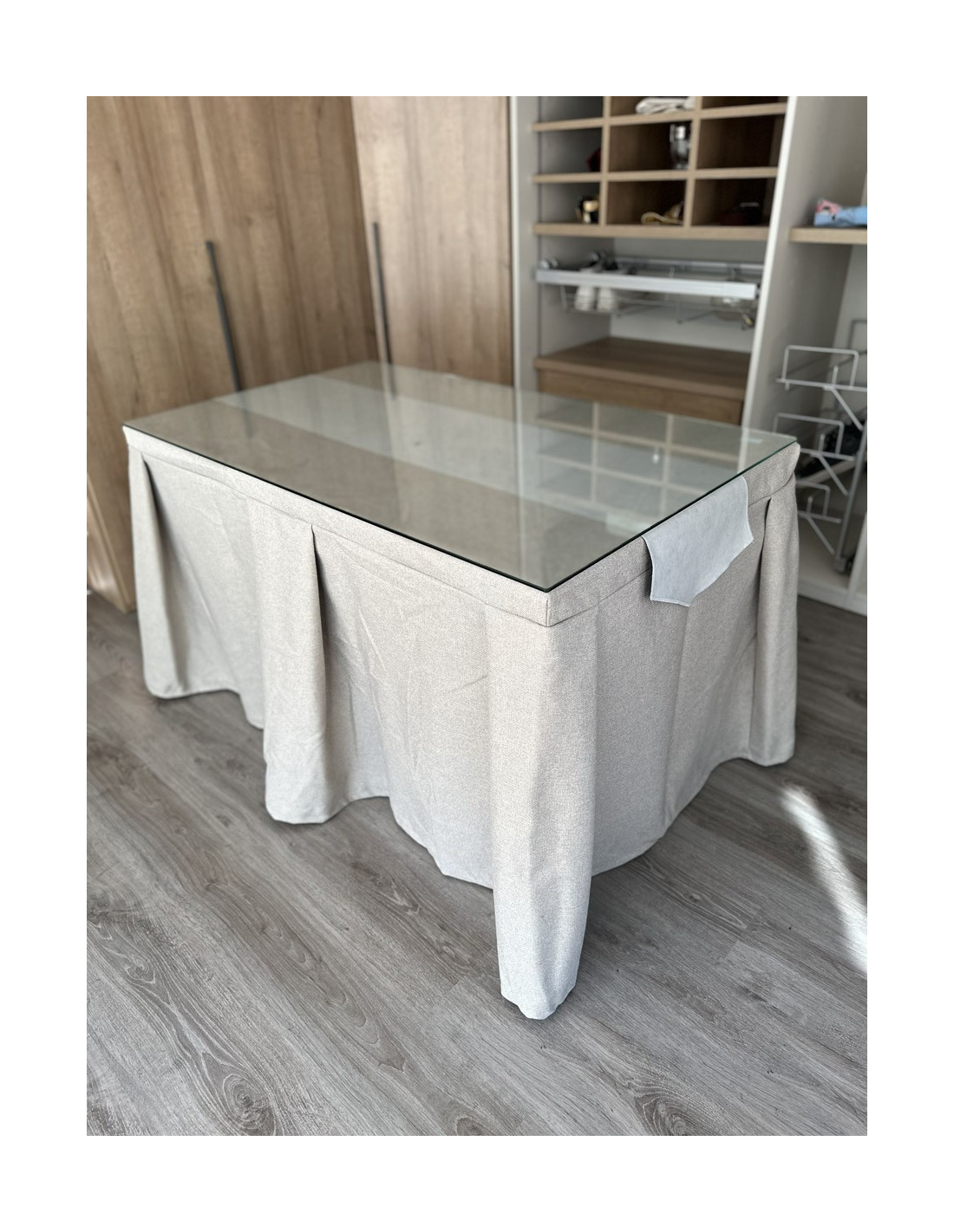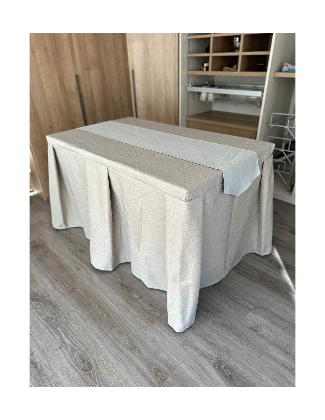 Ropa de mesa camilla antimanchas con relleno térmico y camino de mesa.