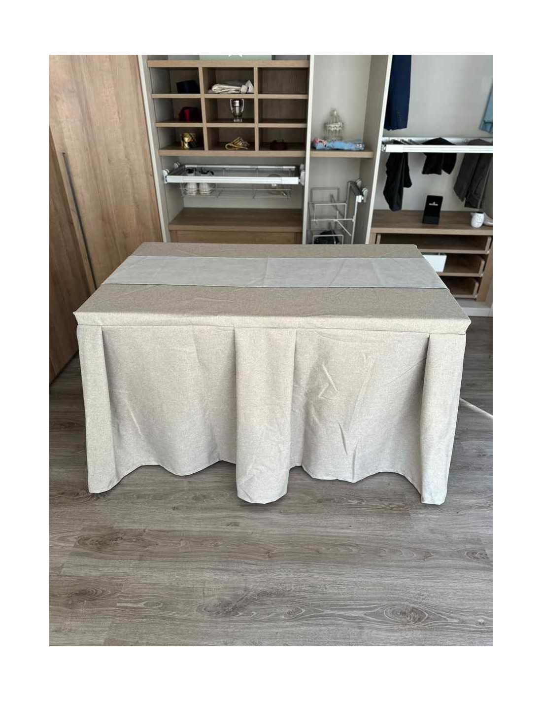 Pack Mesa + Ropa de Mesa Camilla Moderna Antimanchas color Beige con Camino Gris Perla