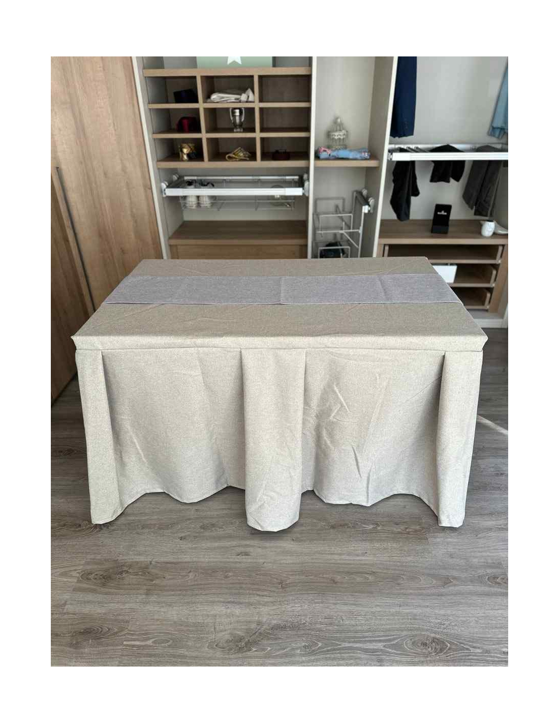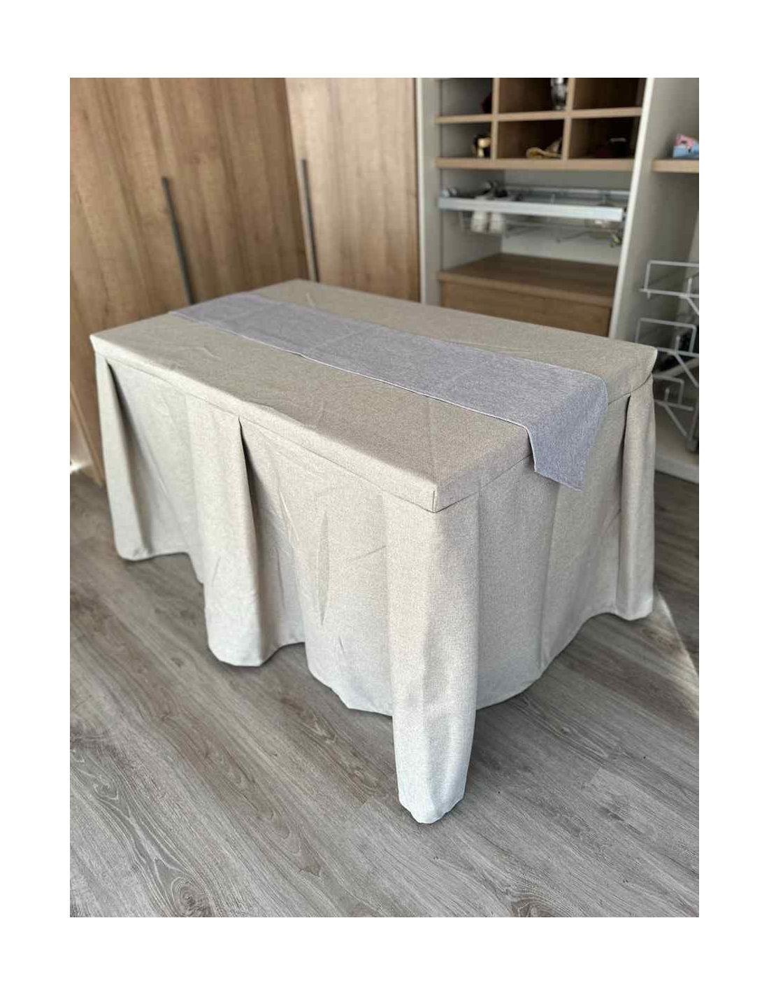 Pack Mesa + Ropa de Mesa Camilla Moderna Antimanchas color Beige con Camino Gris Plata