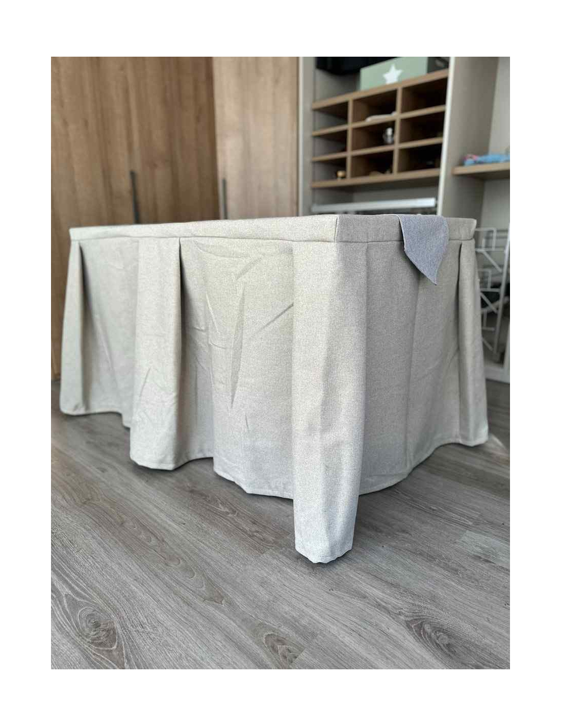Vista su mesa de camilla con esta ropa de gran calidad y diseño italiano. Su tejido antimanchas le dará tranquilidad en el caso de que tenga pequeños o mascotas en casa. Esto se debe al uso de Teflón para su elaboración, permitiendo que este tipo de enaguas repelan todo tipo de líquidos y evitando, de esta manera, que la mancha llegue a quedarse impregnada en el tejido.