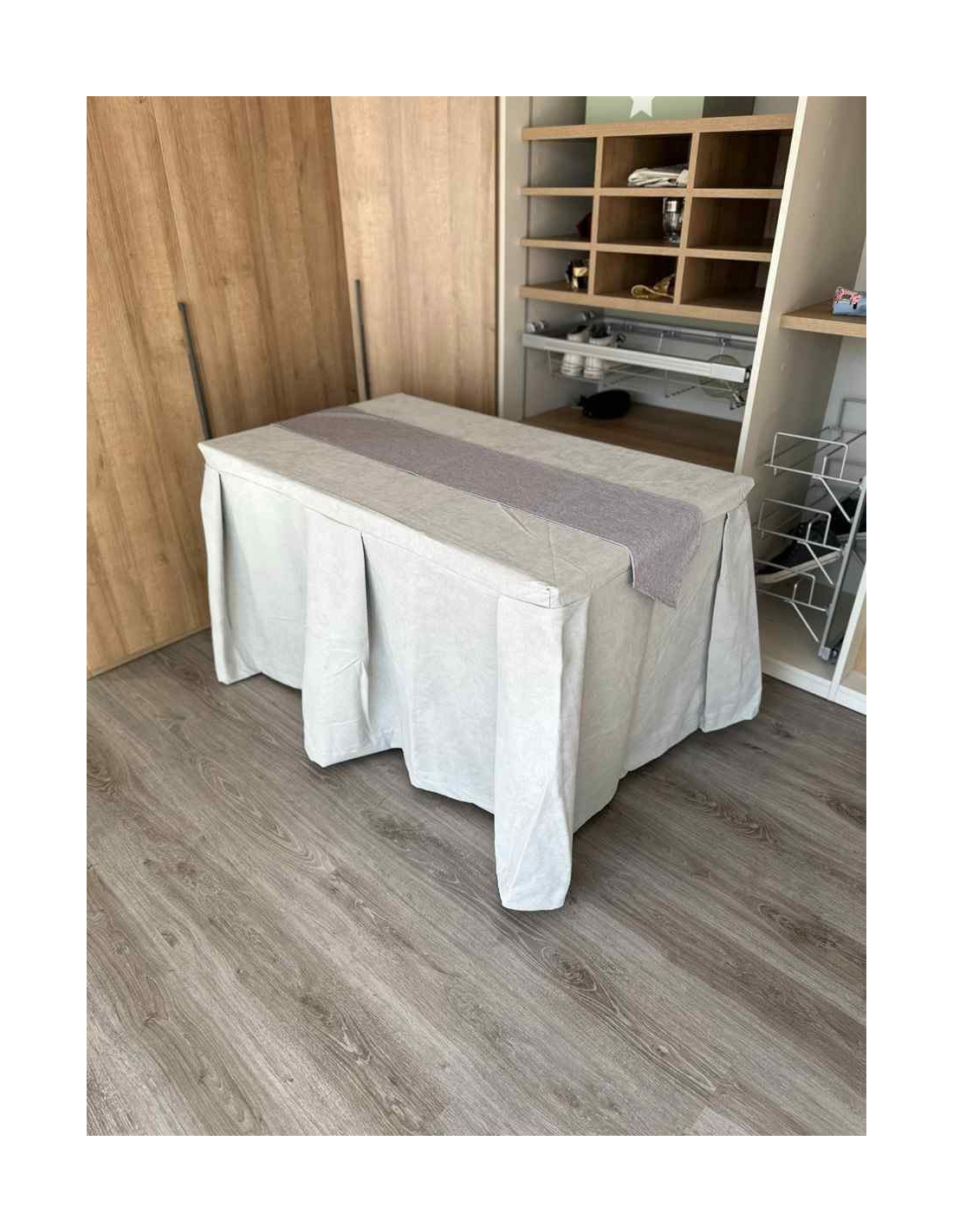 Ropa de mesa camilla antimanchas con relleno térmico y camino de mesa.