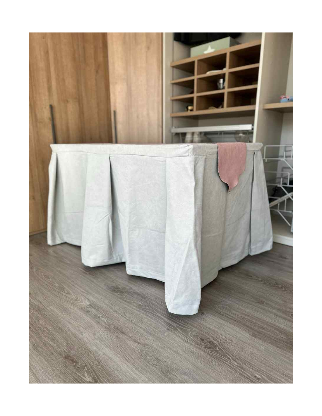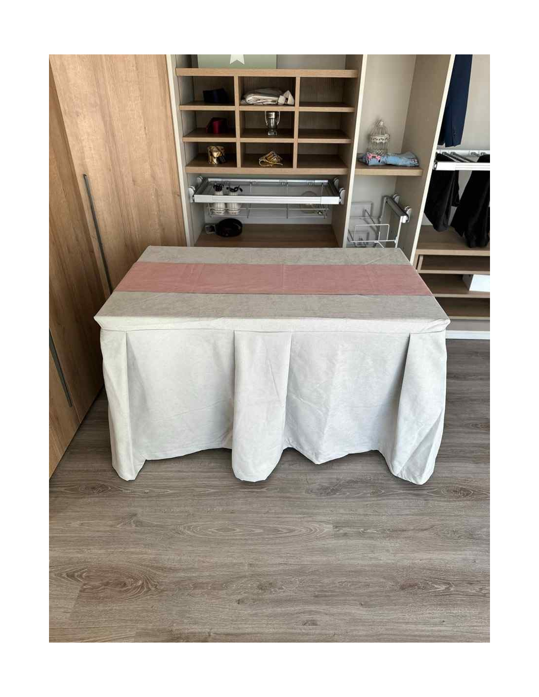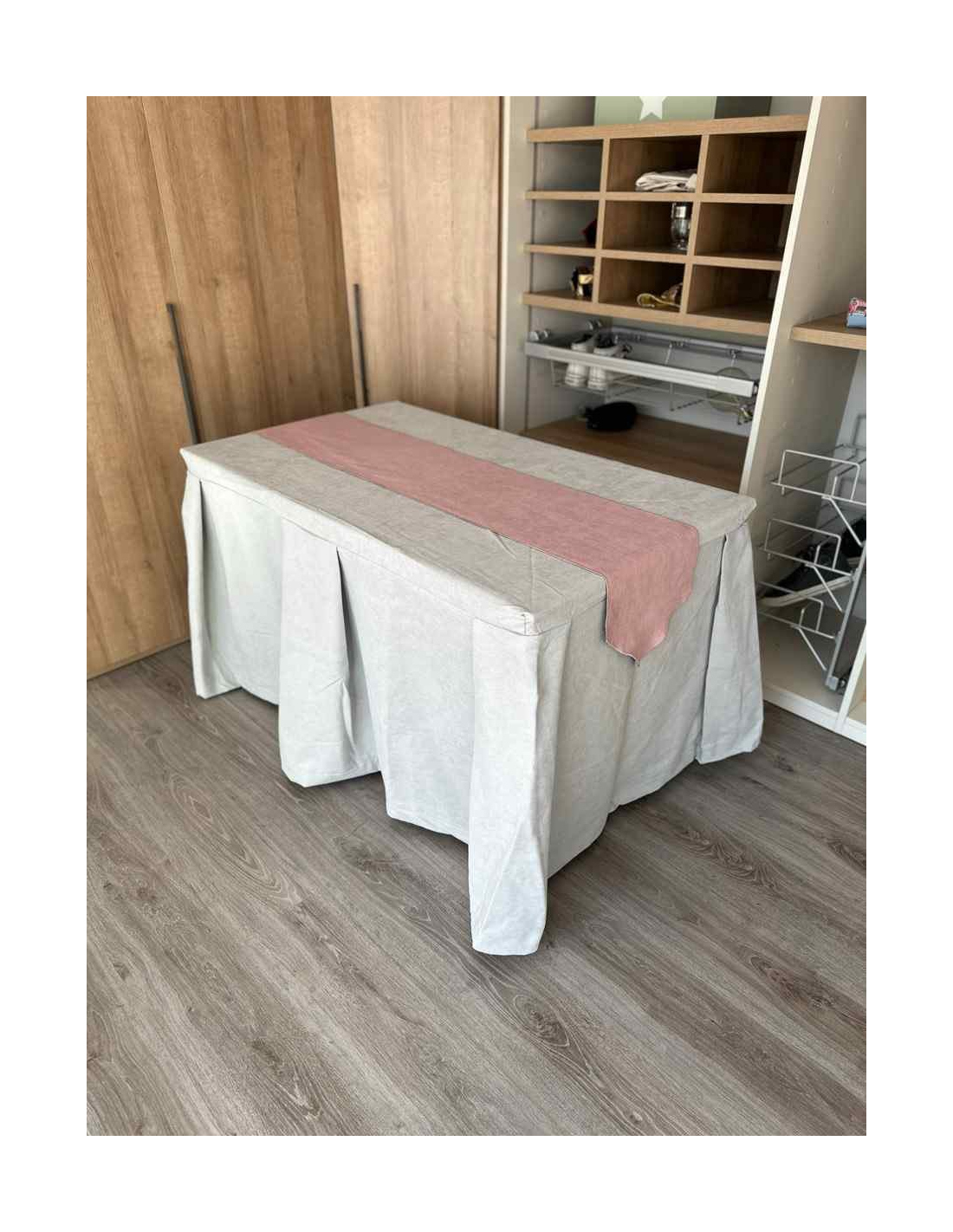 Pack Mesa + Ropa de Mesa Camilla Moderna Antimanchas color Gris Perla con Camino Rosa