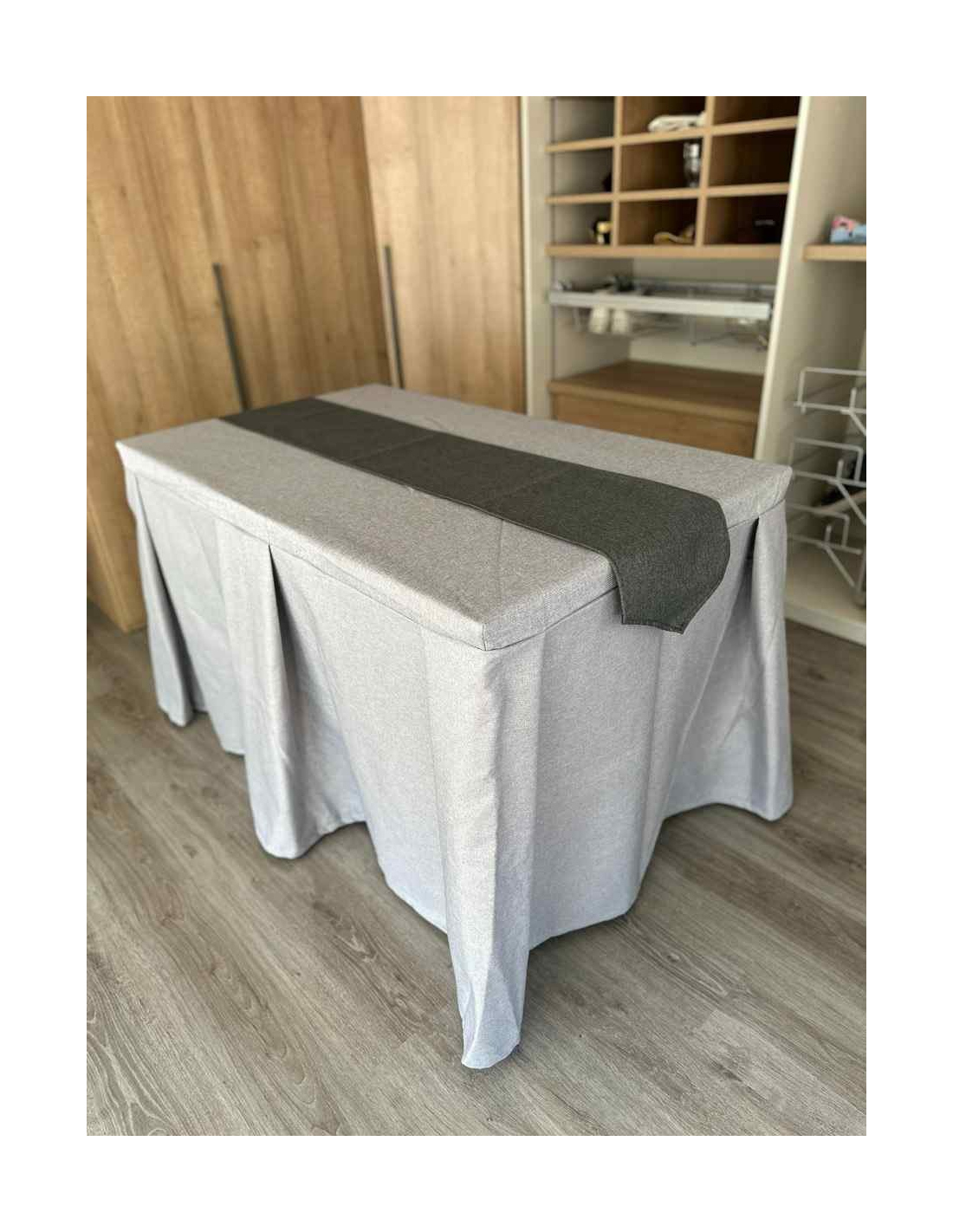 Pack Mesa + Ropa de Mesa Camilla Moderna Antimanchas color Gris Plata con Camino Marengo