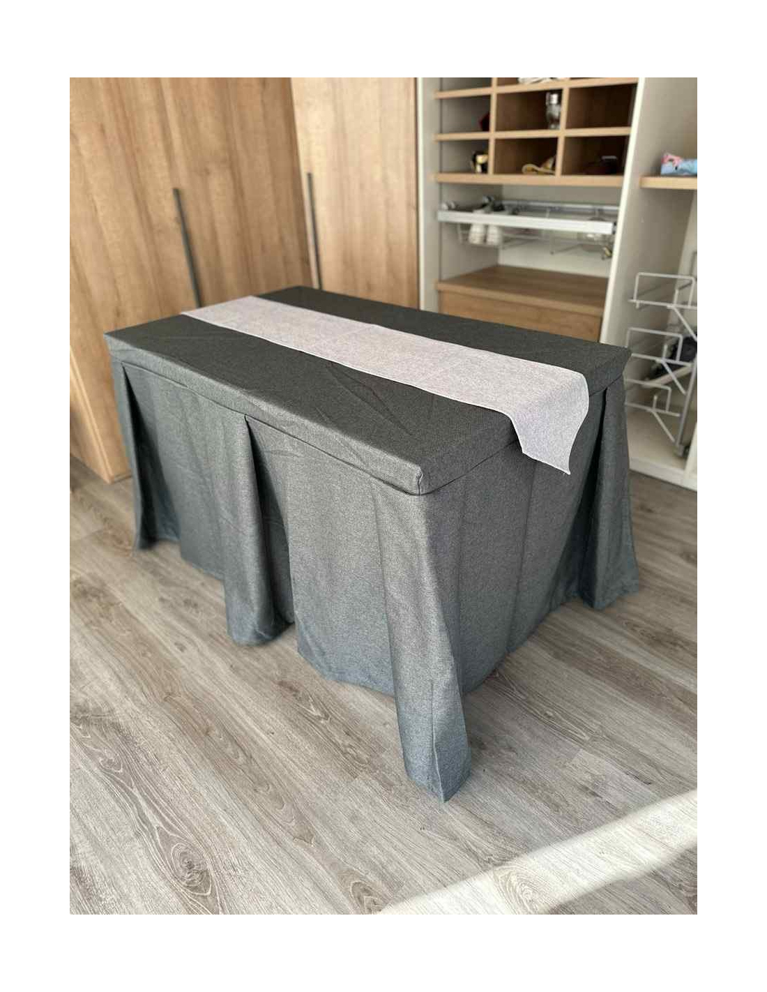 Ropa de mesa camilla antimanchas con relleno térmico y camino de mesa.