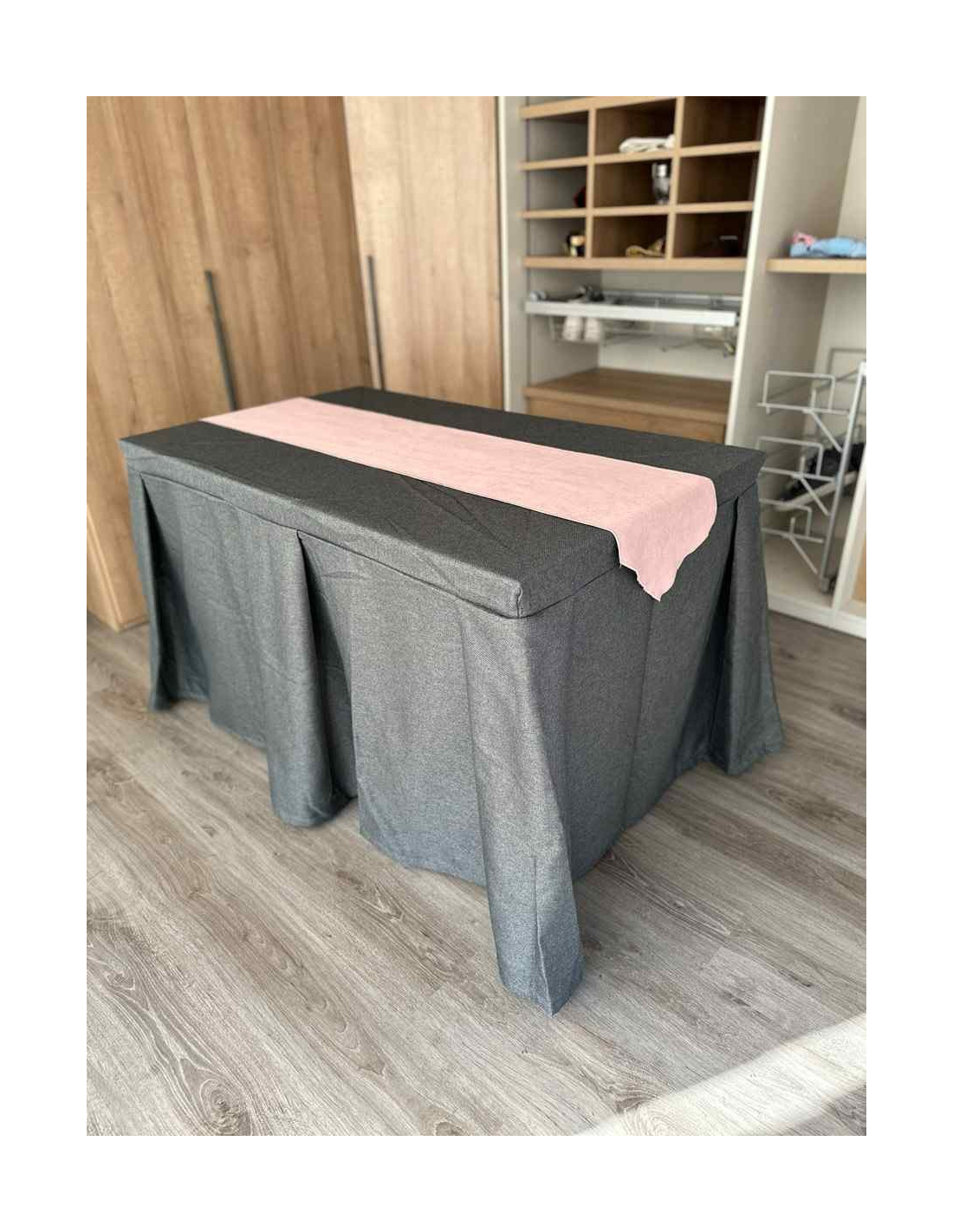 Pack Mesa + Ropa de Mesa Camilla Moderna Antimanchas color Marengo con Camino Rosa