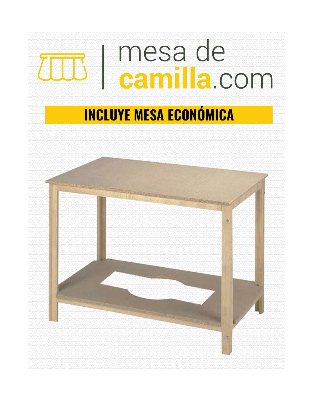 Ropa de mesa camilla antimanchas con relleno térmico y camino de mesa.