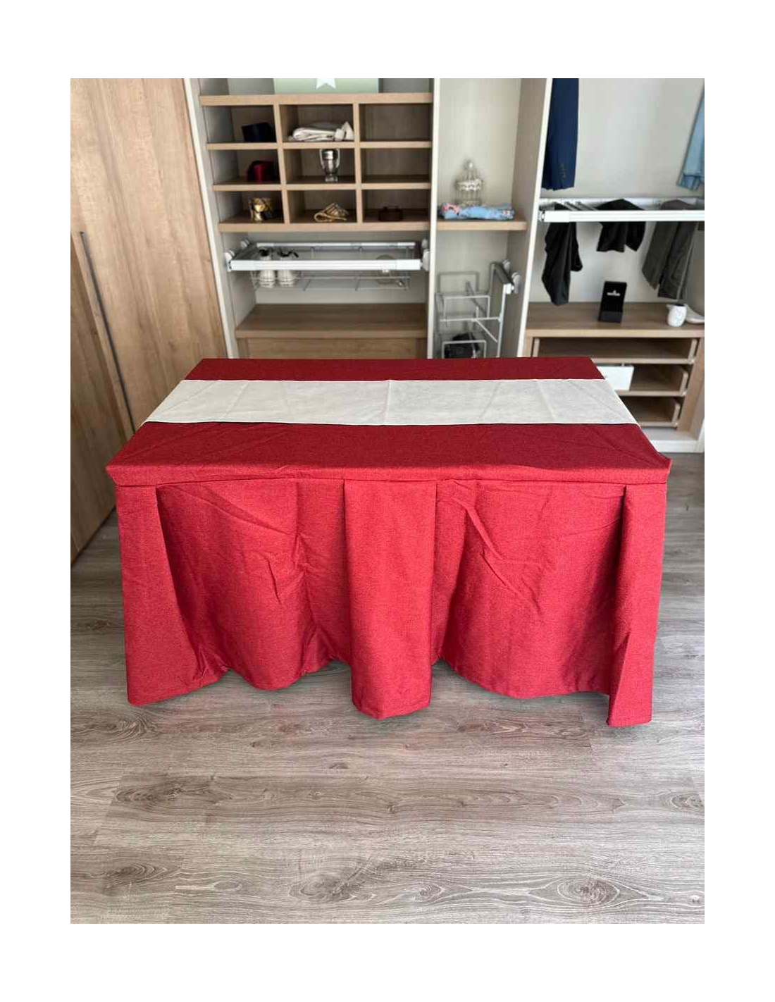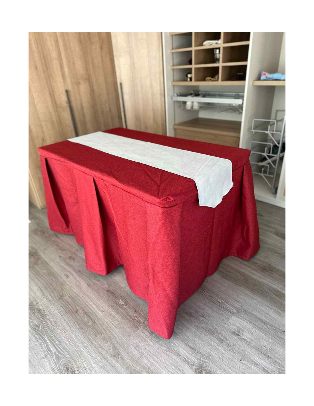Pack Mesa + Ropa de Mesa Camilla Moderna Antimanchas color Rojo con Camino Gris Perla