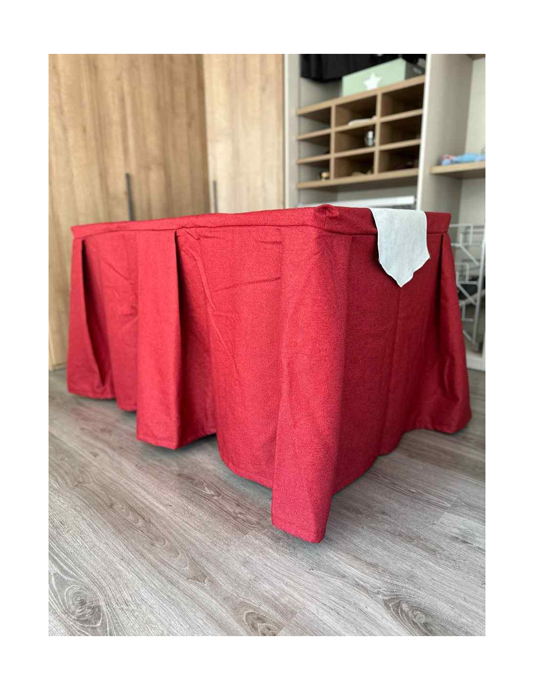 Vista su mesa de camilla con esta ropa de gran calidad y diseño italiano. Su tejido antimanchas le dará tranquilidad en el caso de que tenga pequeños o mascotas en casa. Esto se debe al uso de Teflón para su elaboración, permitiendo que este tipo de enaguas repelan todo tipo de líquidos y evitando, de esta manera, que la mancha llegue a quedarse impregnada en el tejido.