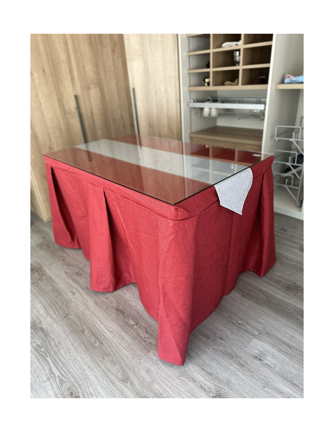 Ropa de mesa camilla antimanchas con relleno térmico y camino de mesa.