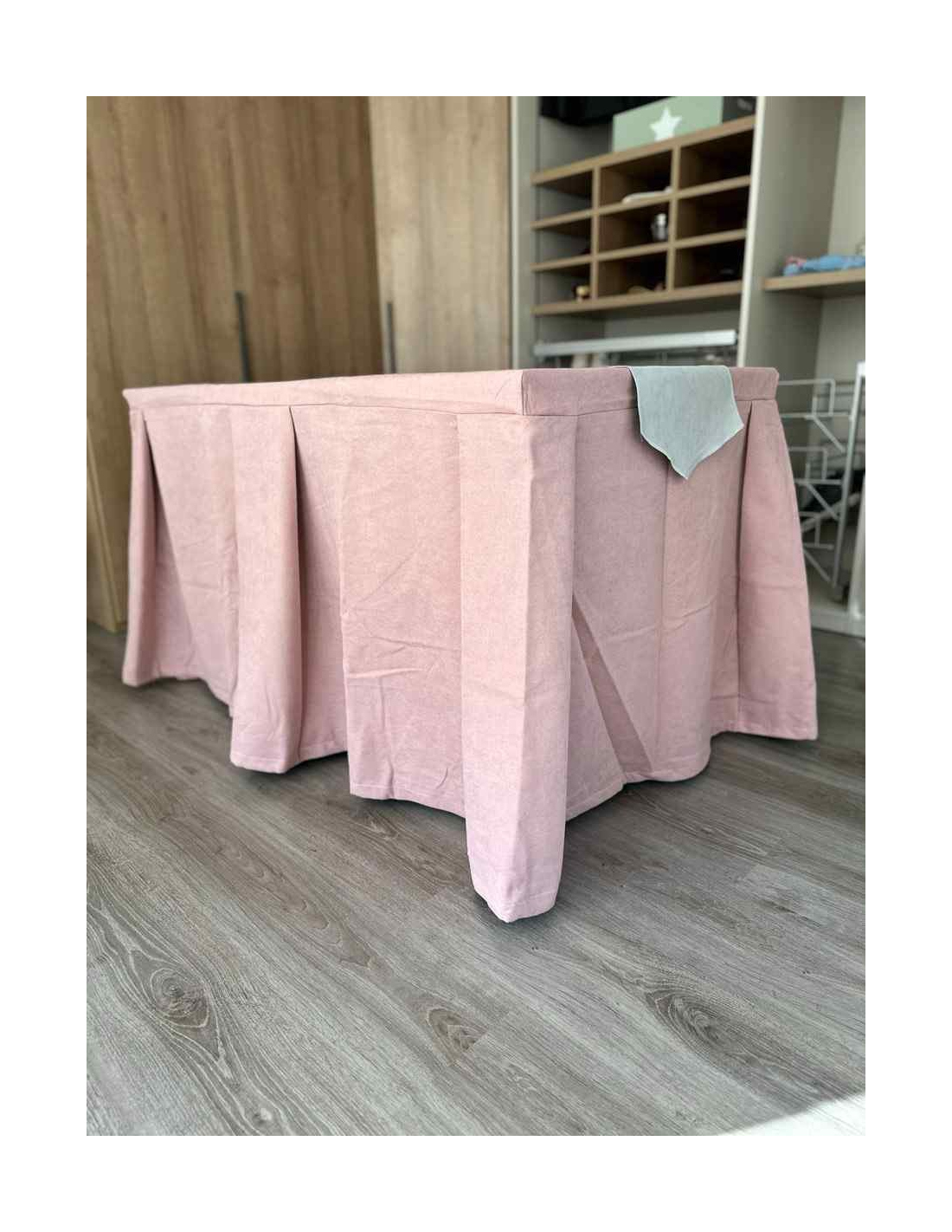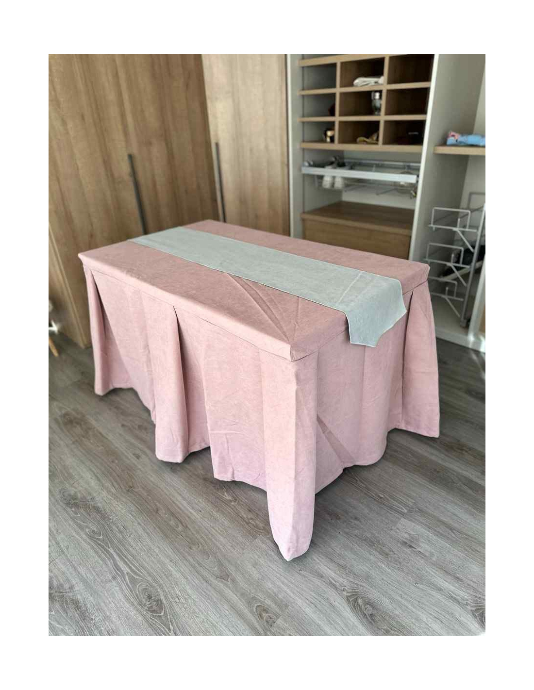 Pack Mesa + Ropa de Mesa Camilla Moderna Antimanchas color Rosa con Camino Gris Perla
