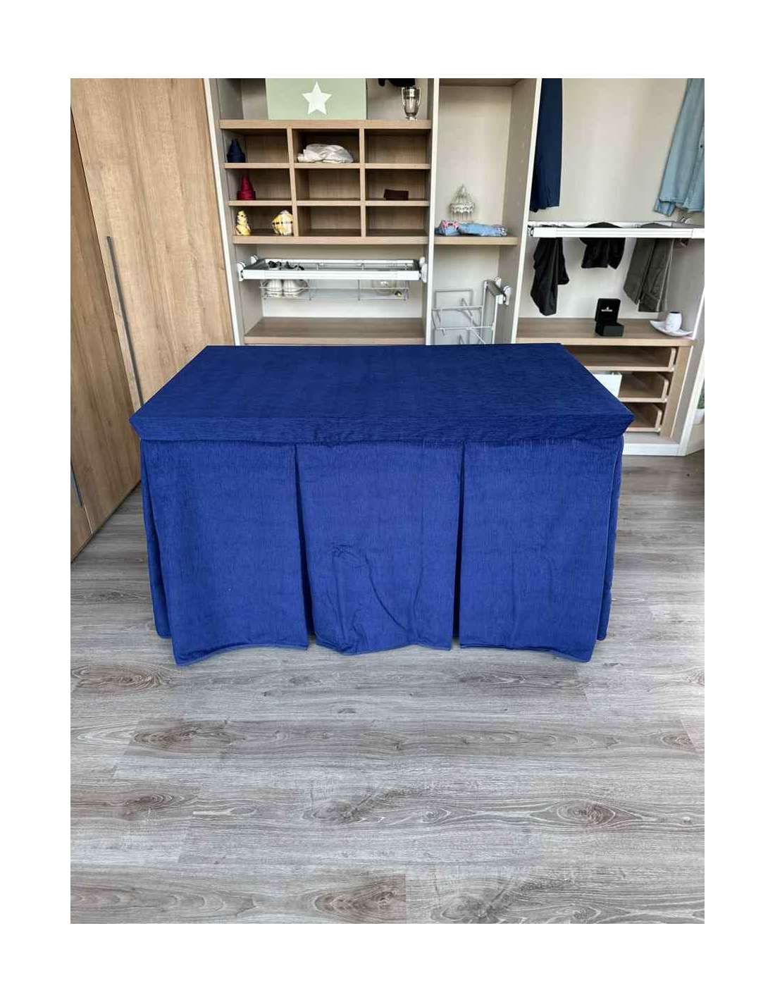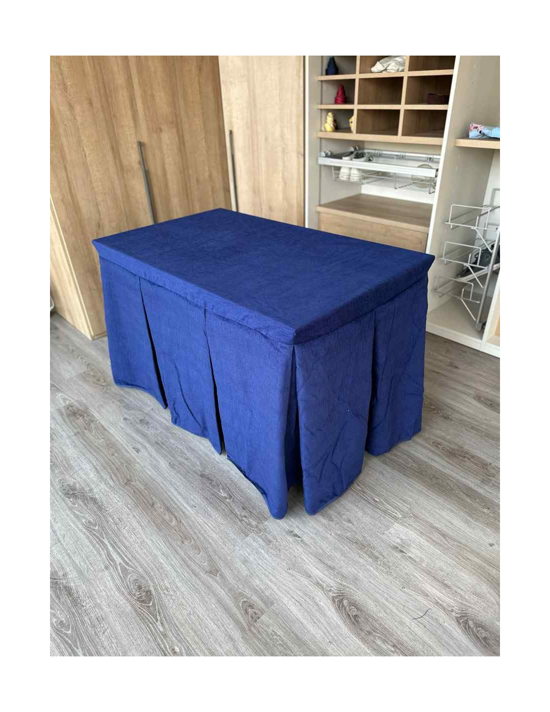 Confeccionada con 10 pliegues para mantener el calor de manera eficiente. Las tablas comunmente llamados pliegues, favorecen la retención de la temperatura impidiendo escapar el calor cuando nos sentamos en la mesa y nos cubrimos con ella. Gracias a nuestro diseño en los fuelles la falda de mesa camilla caerá cubriéndono los laterales e impidiendo que escape el calor.