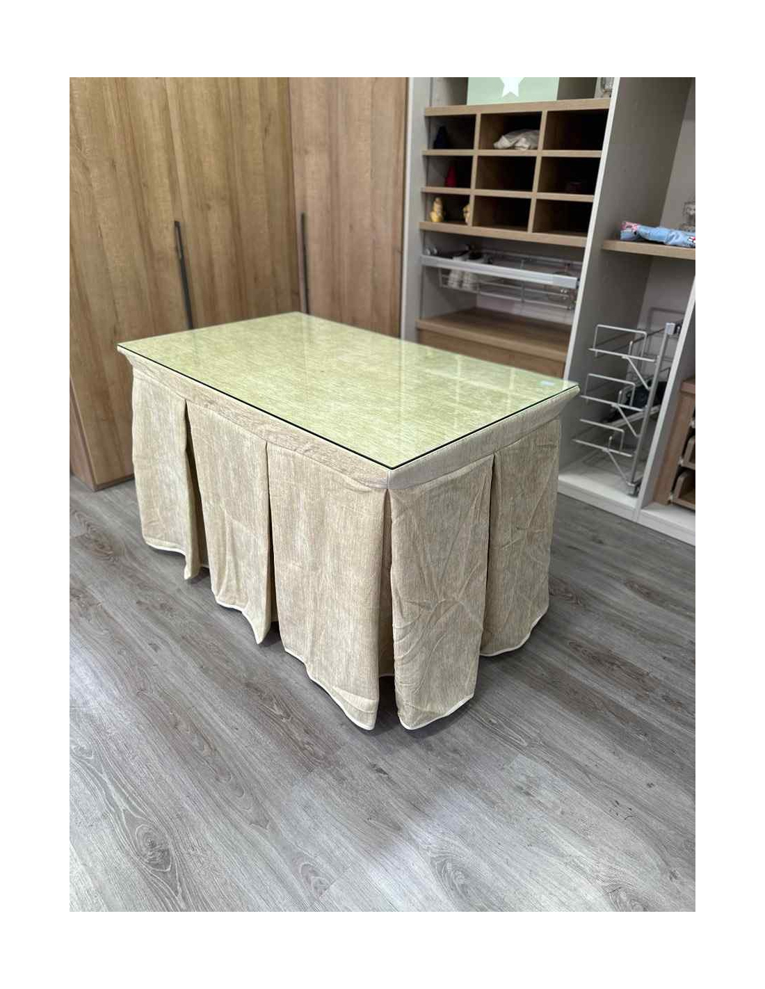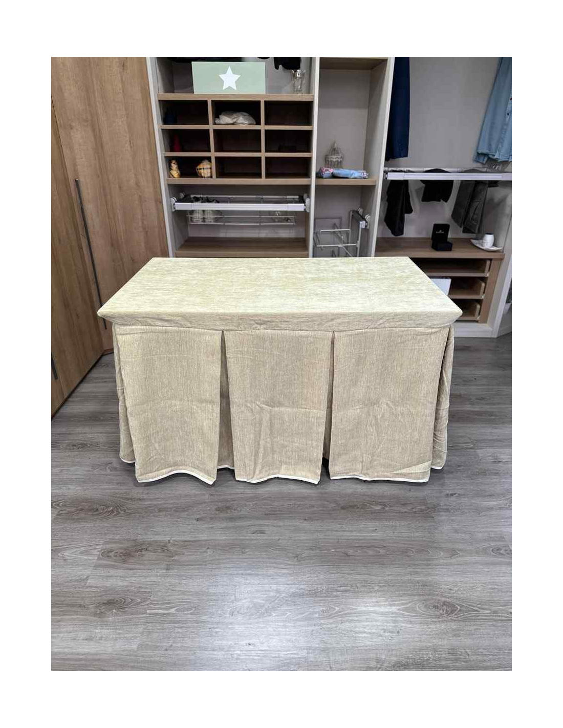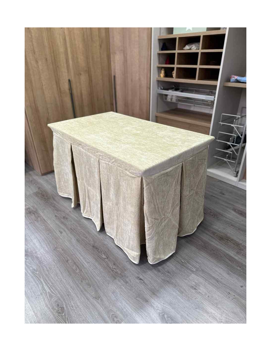 Confeccionada con 10 pliegues para mantener el calor de manera eficiente. Las tablas comunmente llamados pliegues, favorecen la retención de la temperatura impidiendo escapar el calor cuando nos sentamos en la mesa y nos cubrimos con ella. Gracias a nuestro diseño en los fuelles la falda de mesa camilla caerá cubriéndono los laterales e impidiendo que escape el calor.