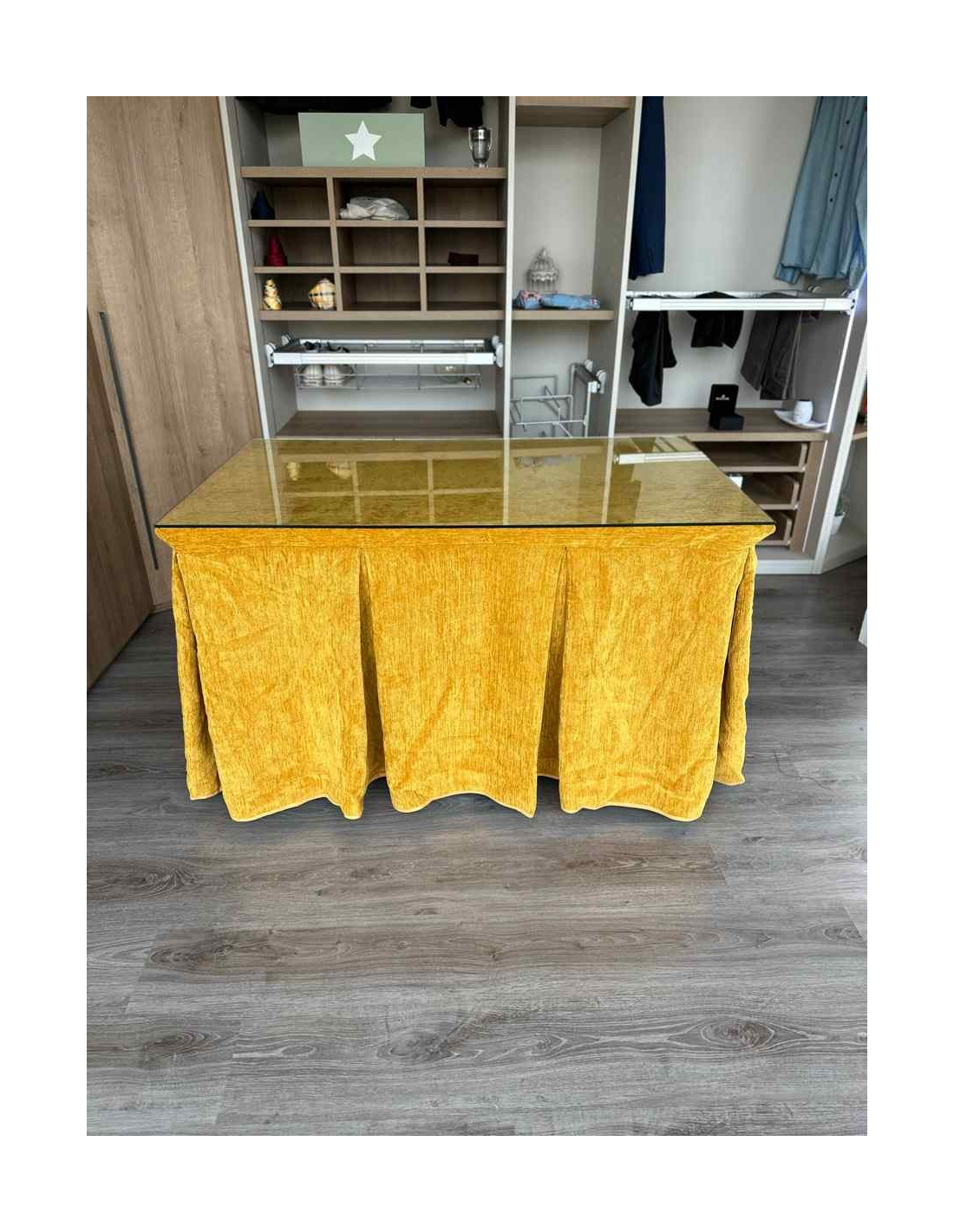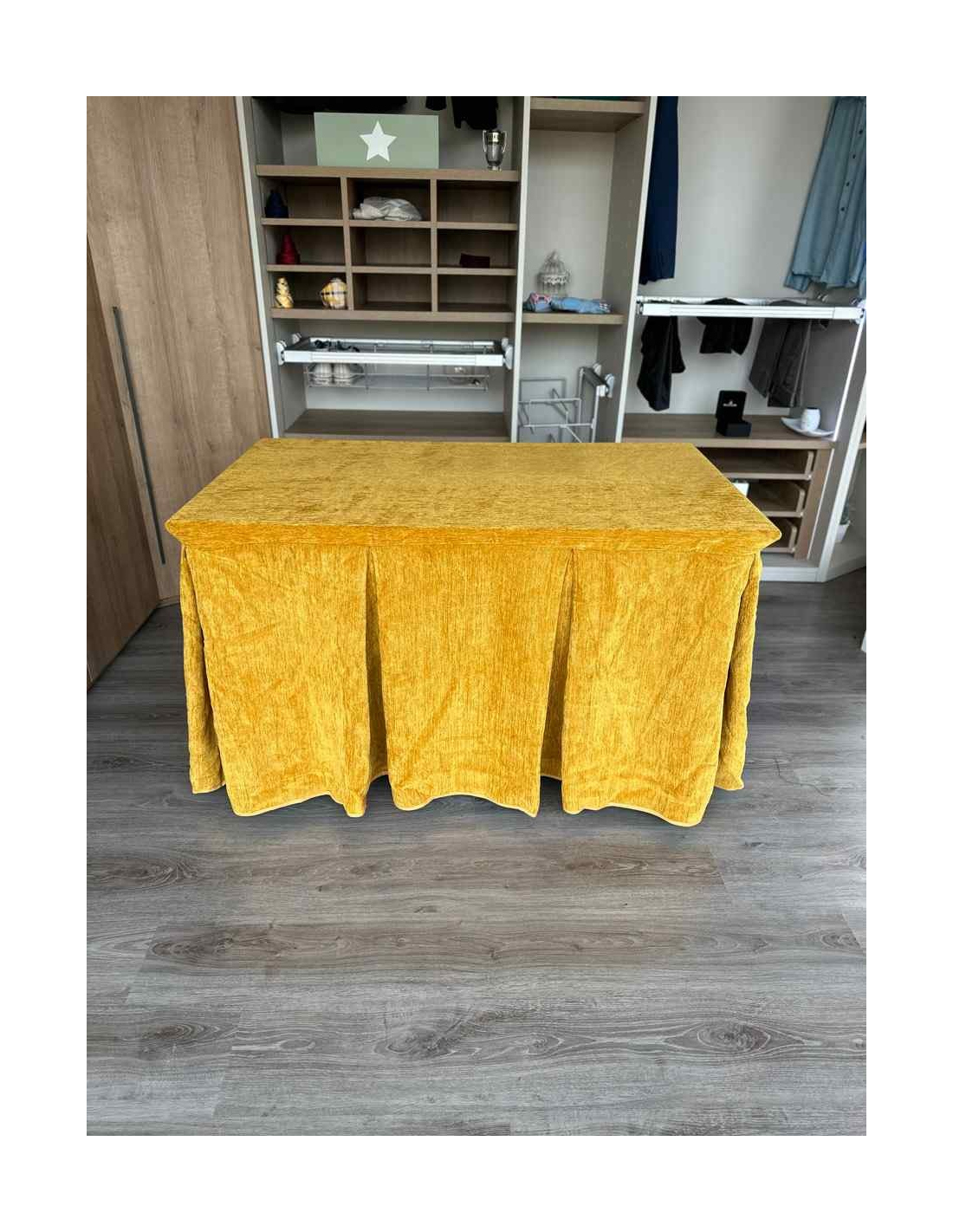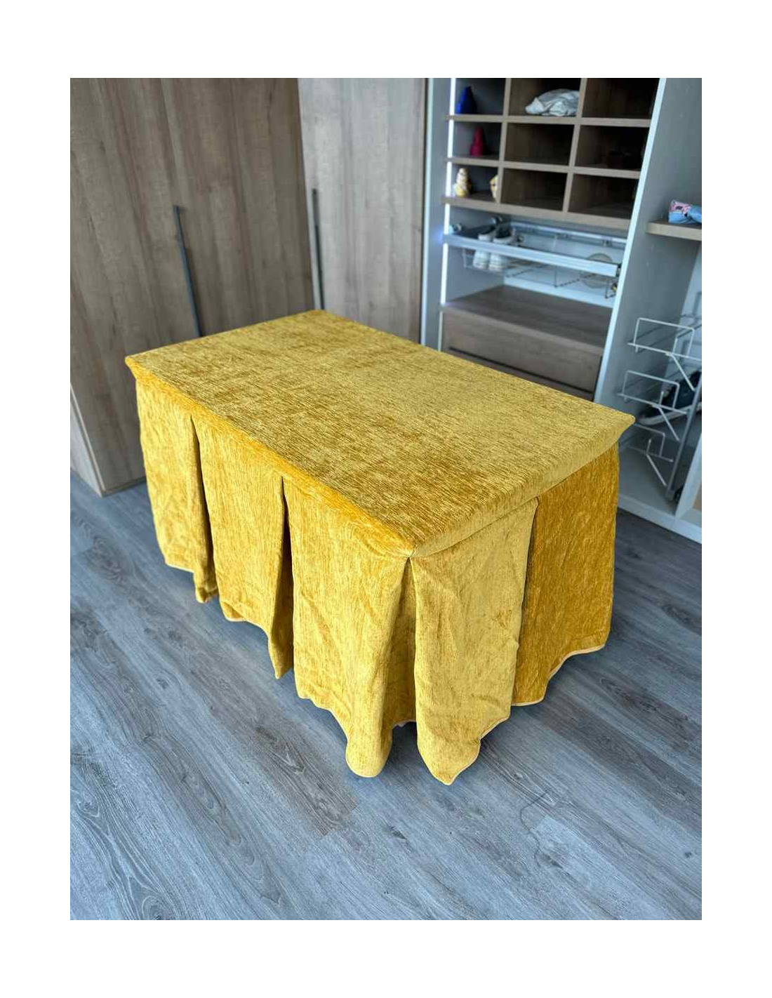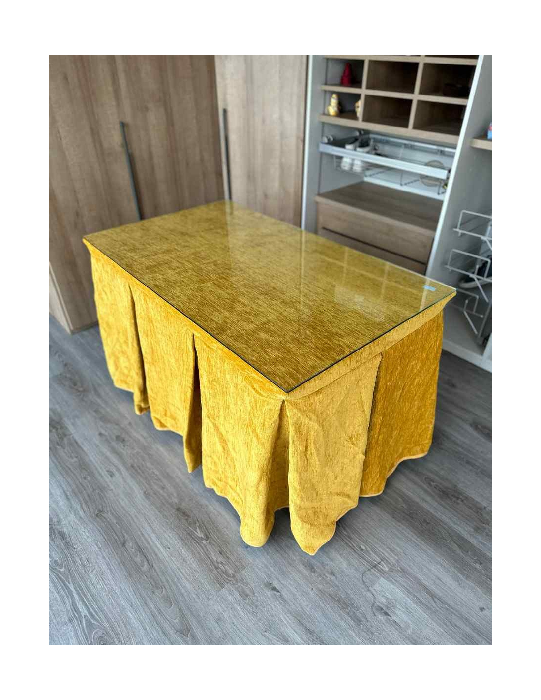 Confeccionada con 10 pliegues para mantener el calor de manera eficiente. Las tablas comunmente llamados pliegues, favorecen la retención de la temperatura impidiendo escapar el calor cuando nos sentamos en la mesa y nos cubrimos con ella. Gracias a nuestro diseño en los fuelles la falda de mesa camilla caerá cubriéndono los laterales e impidiendo que escape el calor.