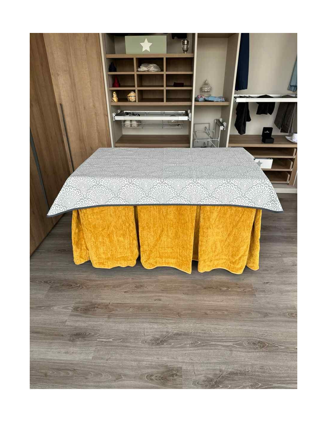Disfruta la calidez de esta ropa de mesa camilla con tejido Doble Grueso de 10 pliegues reforzado con tapete. Tacto suave y agradable, mantiene la temperatura facilitando el ahorro de consumo energético.Elaborado con tejido de gran calidad, sus dos capas de grosor generan una agradable sensación de calor.