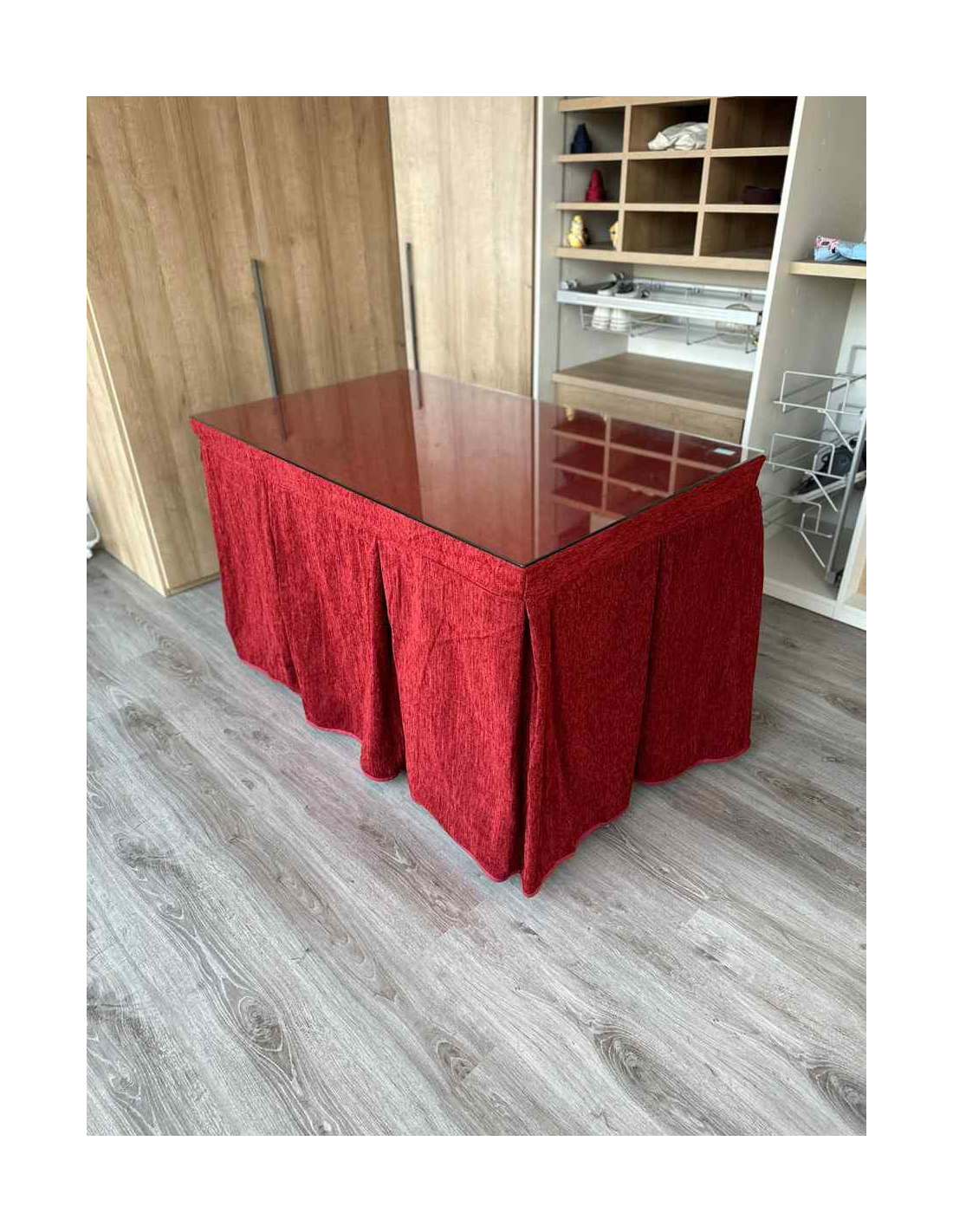 Confeccionada con 10 pliegues para mantener el calor de manera eficiente. Las tablas comunmente llamados pliegues, favorecen la retención de la temperatura impidiendo escapar el calor cuando nos sentamos en la mesa y nos cubrimos con ella. Gracias a nuestro diseño en los fuelles la falda de mesa camilla caerá cubriéndono los laterales e impidiendo que escape el calor.
