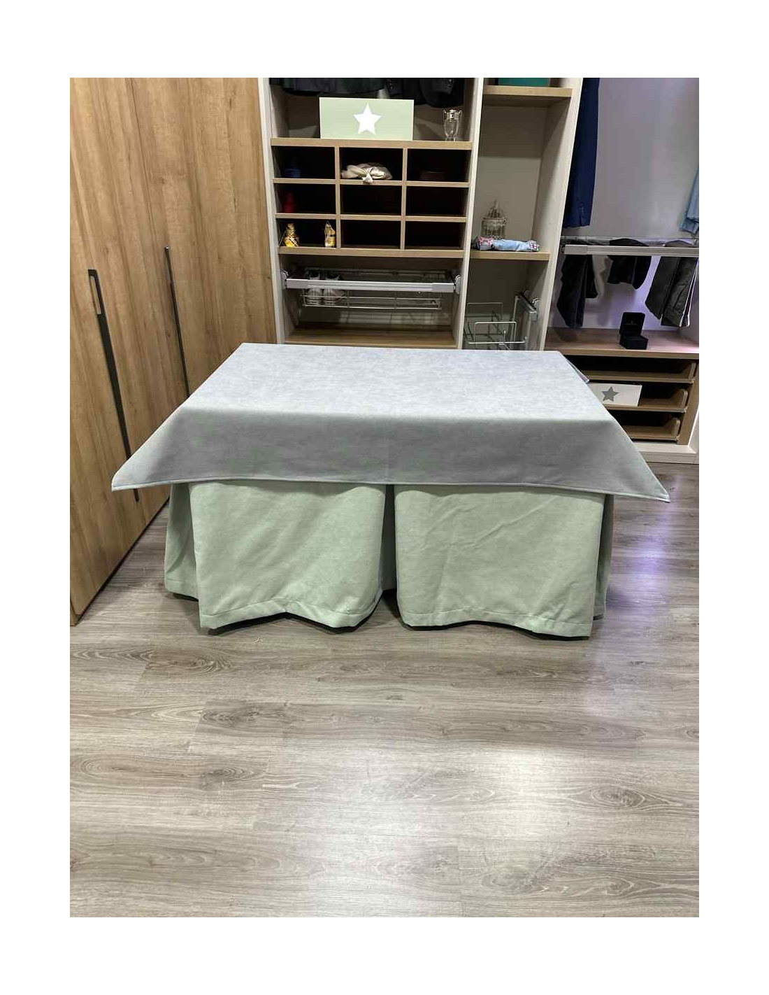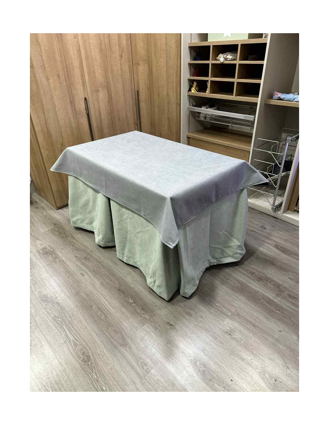 Conjunto Completo Antimanchas Aterciopelada Triplegrueso color Verde Pastel con Tapete Liso Gris
