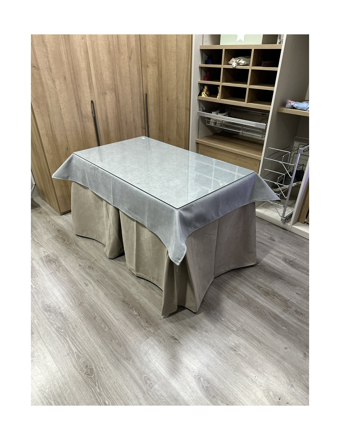 Ropa de Mesa de Camilla Antimanchas Aterciopelada Triplegrueso color Beige con Tapete Liso Gris