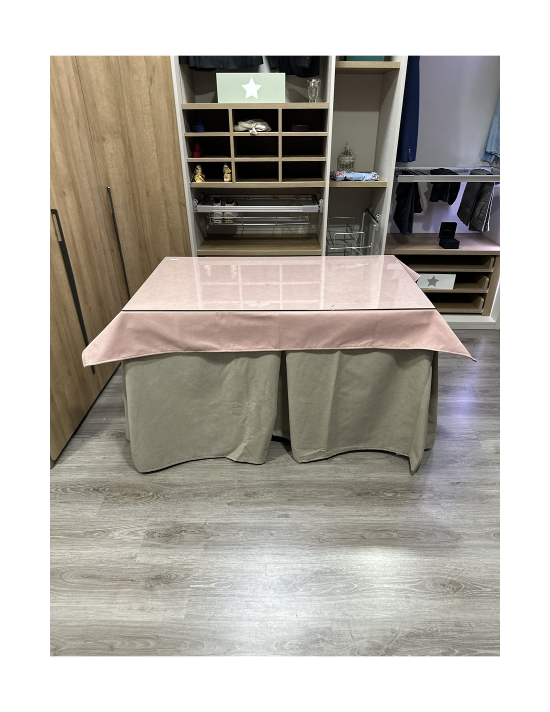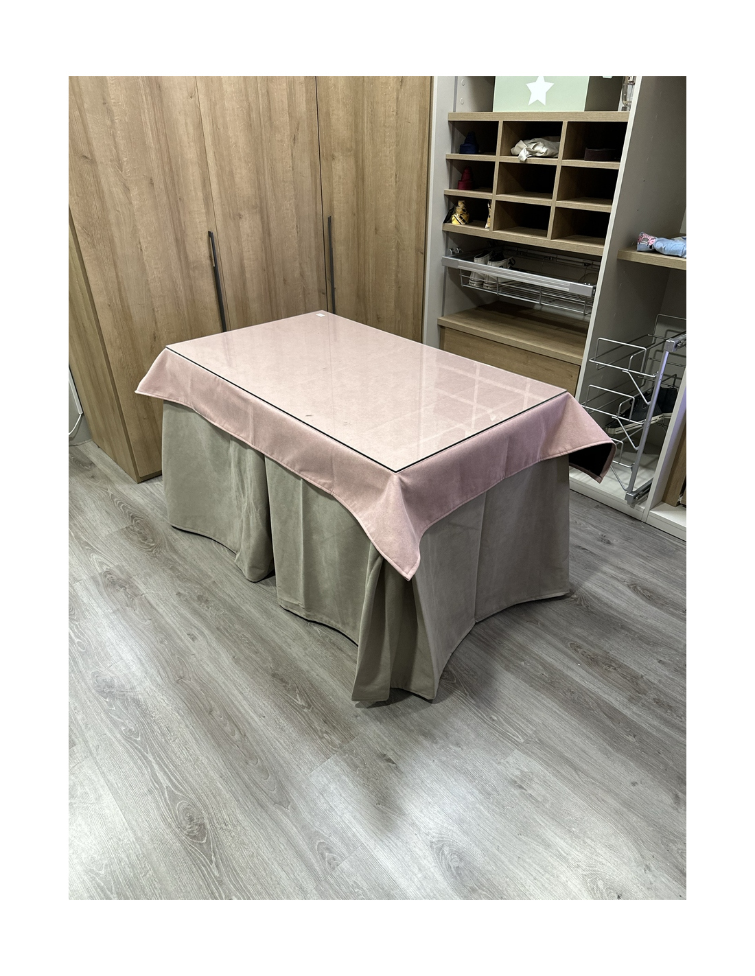 Ropa de Mesa de Camilla Antimanchas Aterciopelada Triplegrueso color Beige con Tapete Liso Rosa