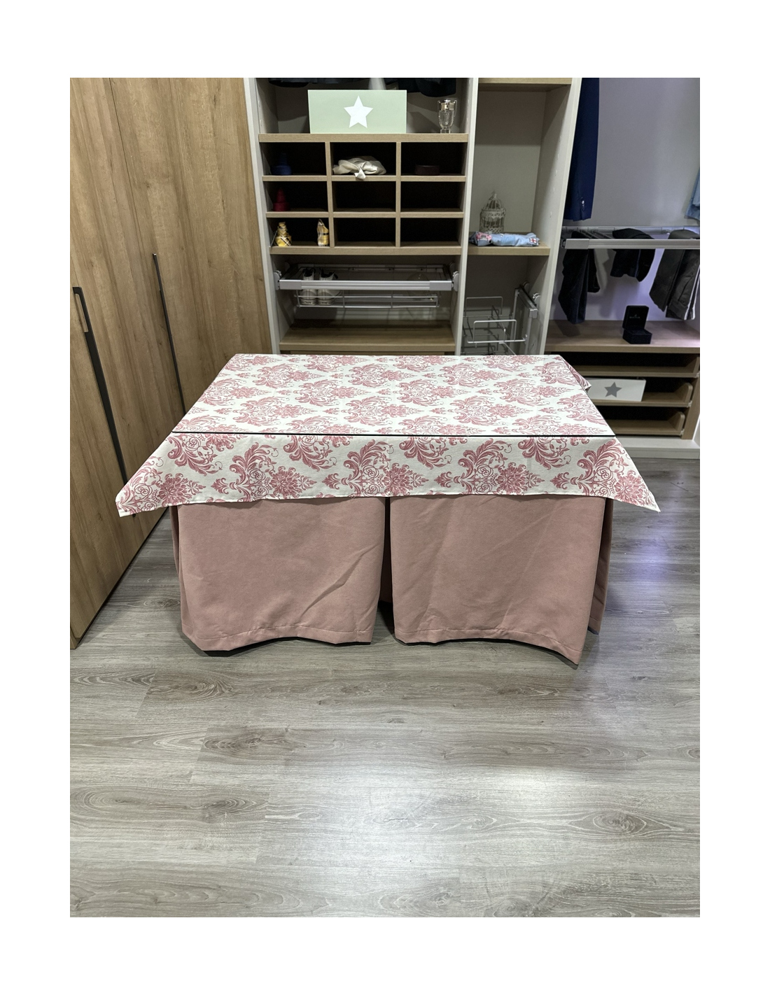 Ropa de Mesa Camilla Antimanchas Aterciopelada Triplegrueso color Rosa con Tapete Vintage