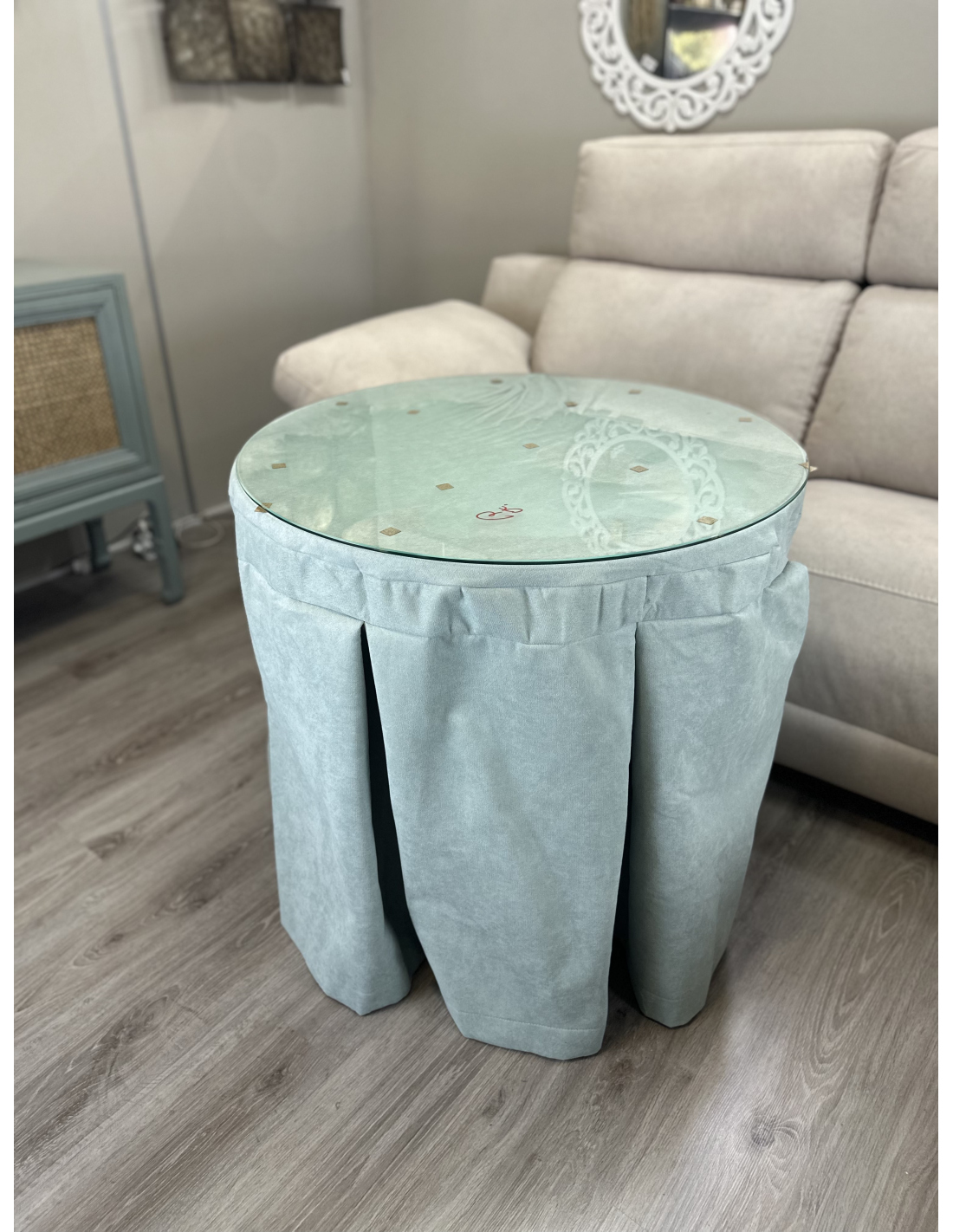 La ropa redonda de camilla antimanchas en color verde combina protección y diseño en una sola pieza.
