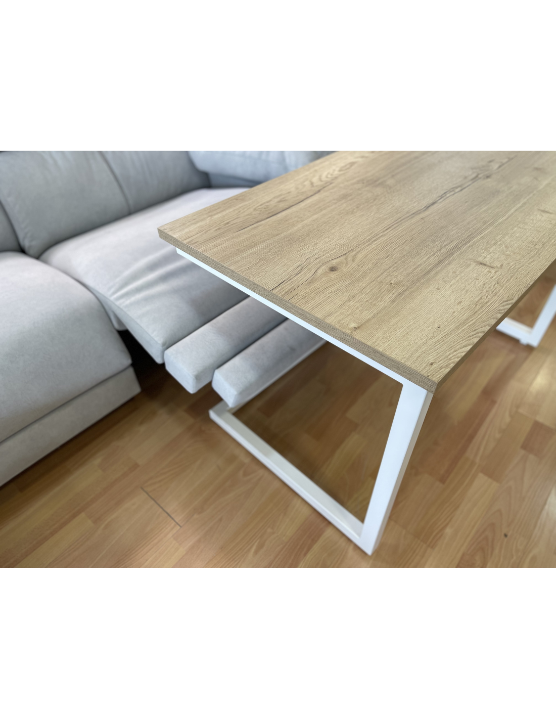Mesa Camilla Rectangular de Forja Relax - Color Blanco - Encimera de Madera con Vetas Negras