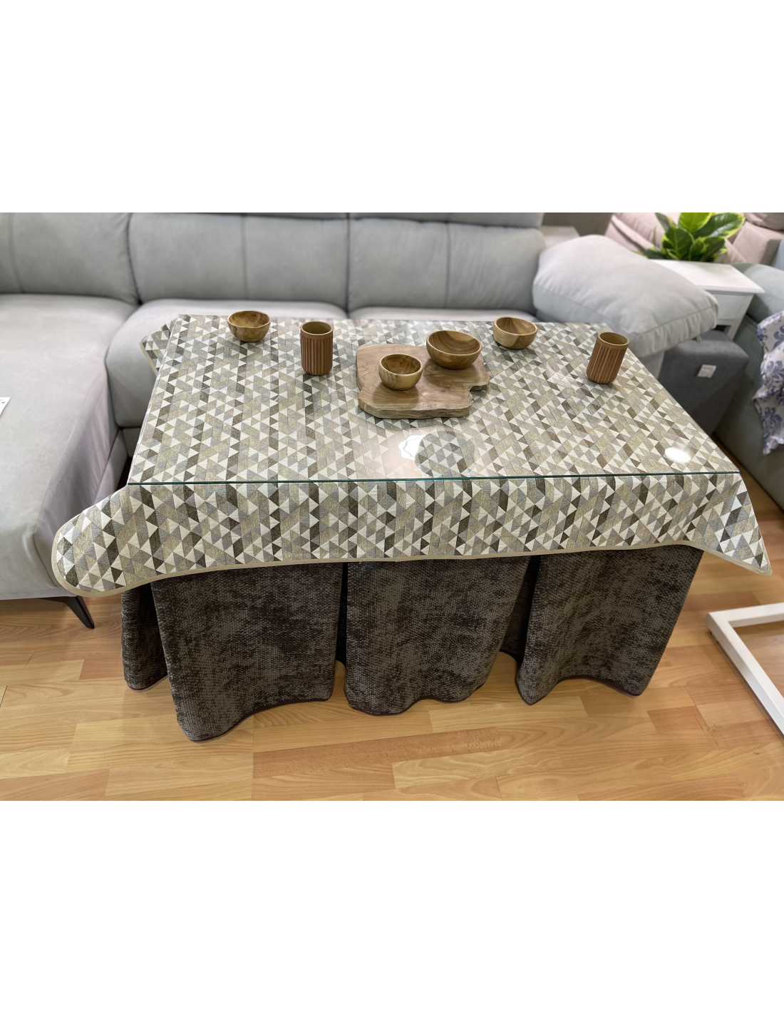 Tapete de diseño para crear ambientes en cada rincón de tu casa. La mesa de camilla es un producto que te permite decorar estancias y darles un ambiente acogedor a tu casa. Además evita las manchas cotidianas al comer ya que cubre la parte alta de la ropa de mesa camilla protegiendola de manchas inoportunas. Muy fácil y cómodo de lavar.
