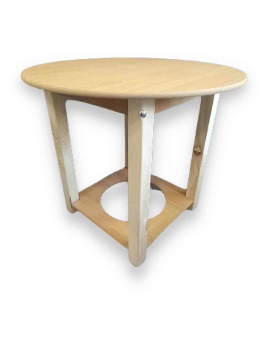 ✓ Mesa camilla de madera redonda. Fabricada con madera de pino maciza.