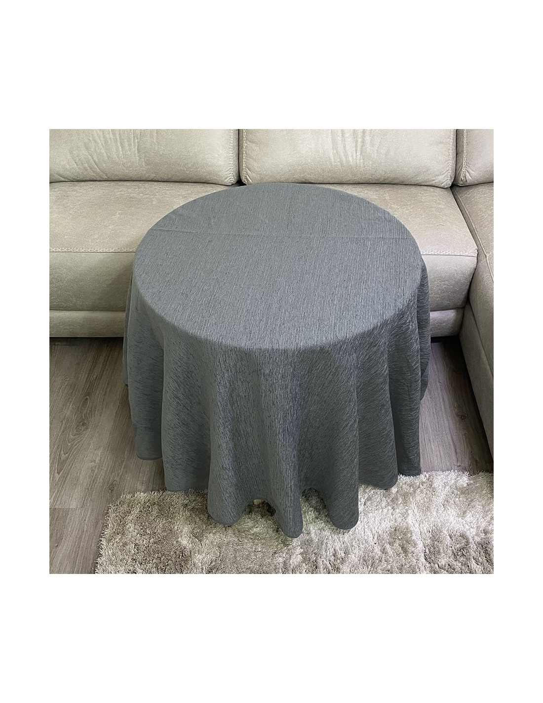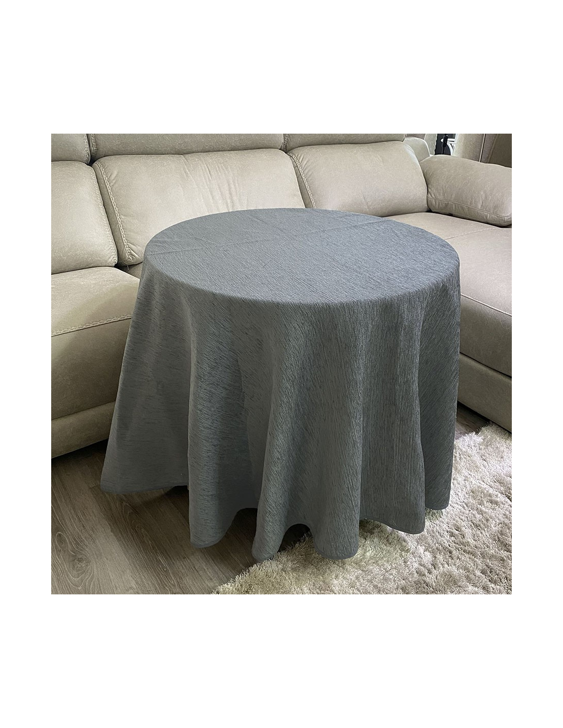 Conjunto Mesa Redonda + Ropa Chenilla Costura Reforzada color Grafito