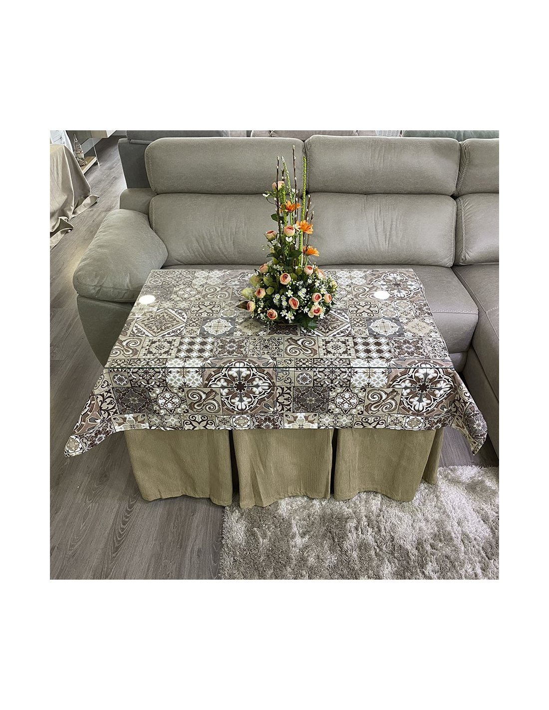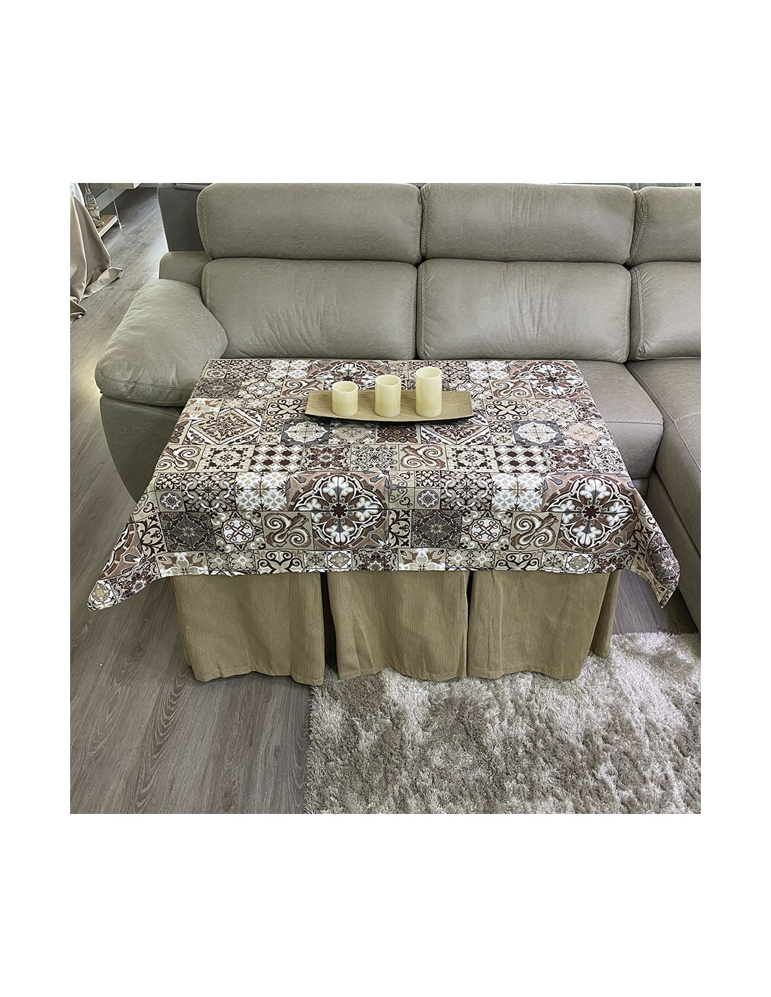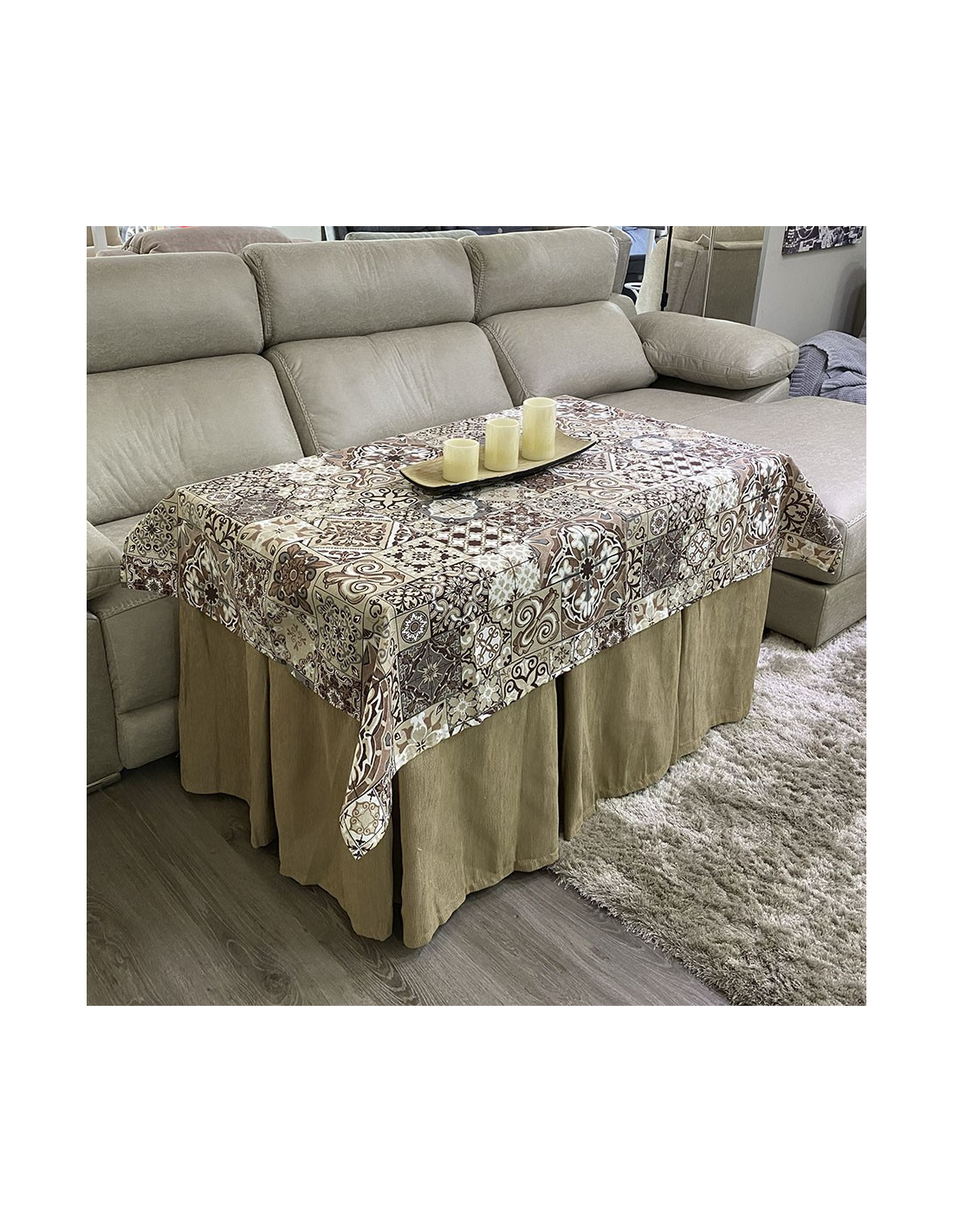 Conjunto Ropa Elegante 10 Pliegues Beige Oscuro con Tapete Azulejo