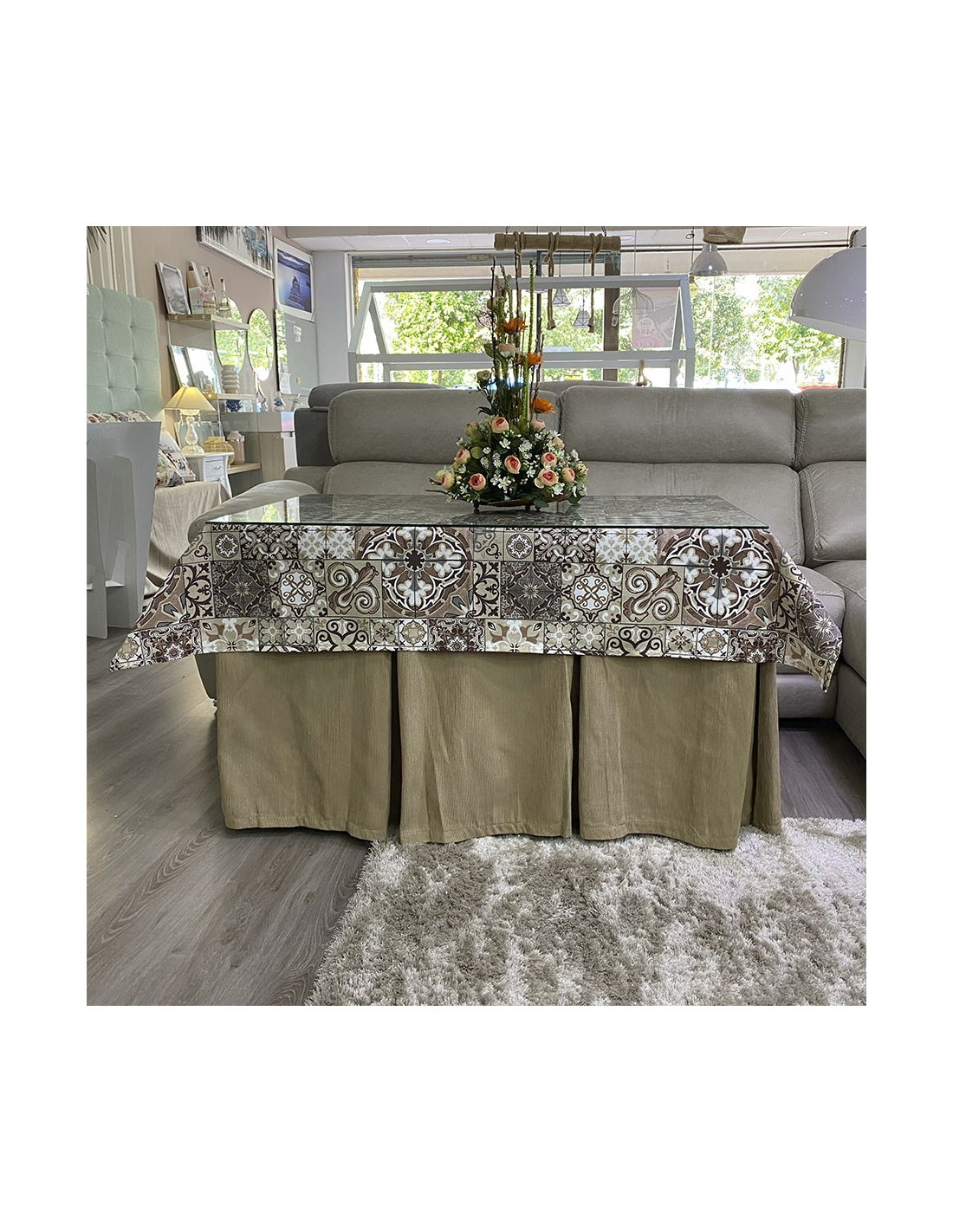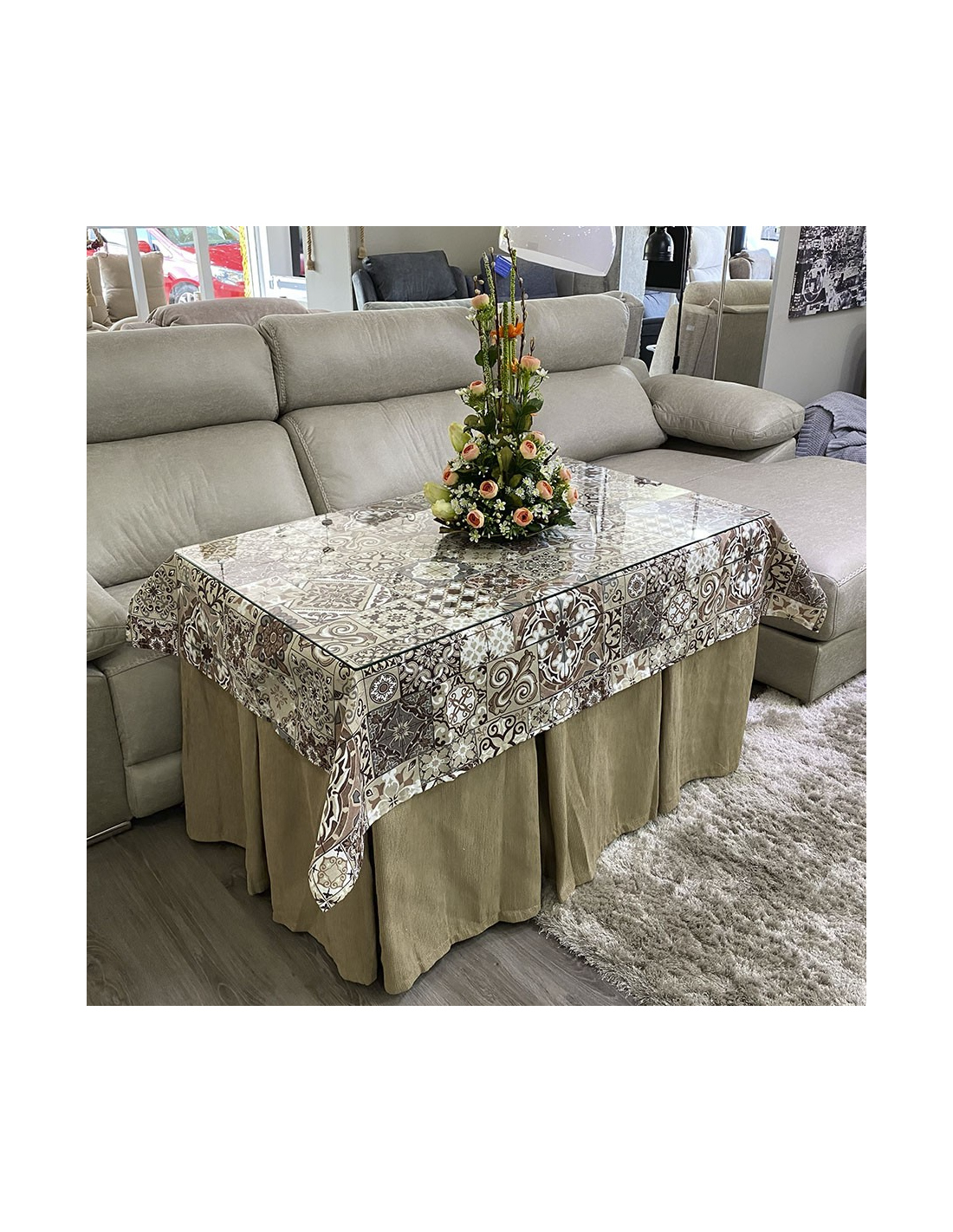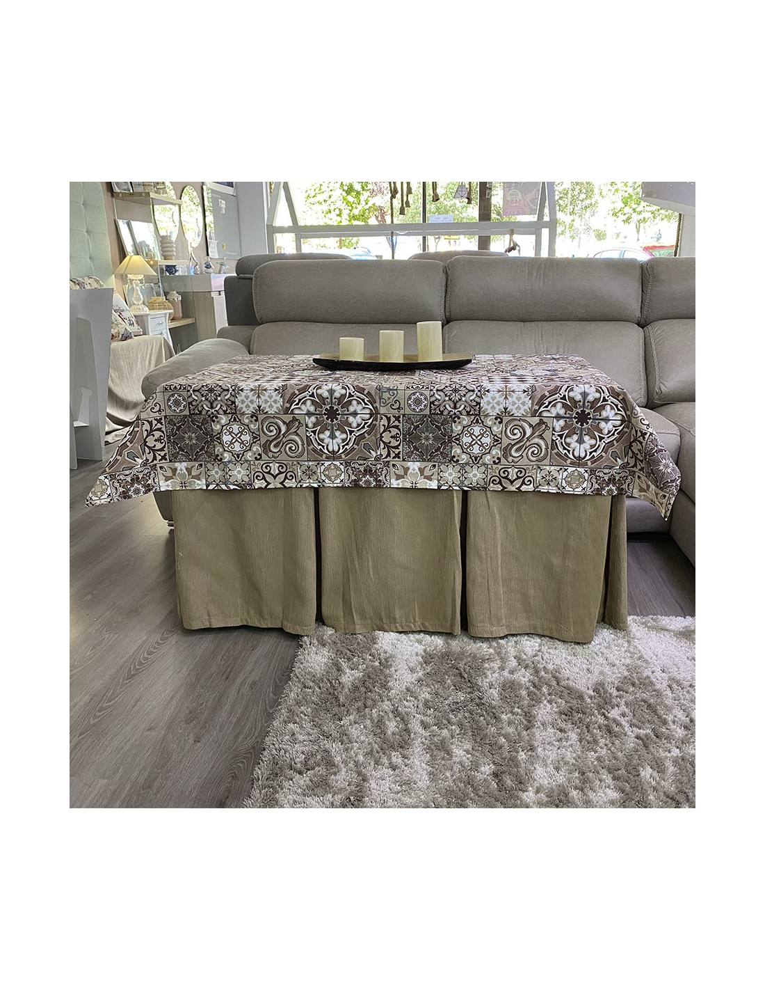 Conjunto Ropa Elegante 10 Pliegues Beige Oscuro con Tapete Azulejo