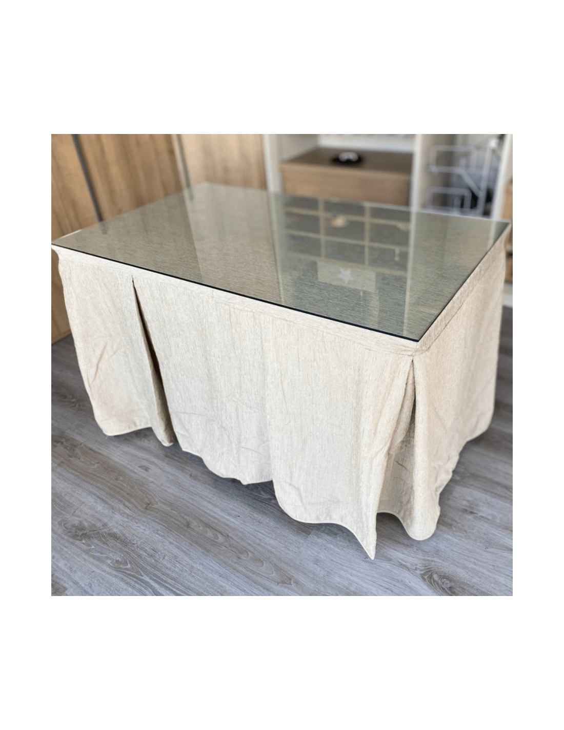 Conjunto mesa camilla chenilla 8 pliegues.