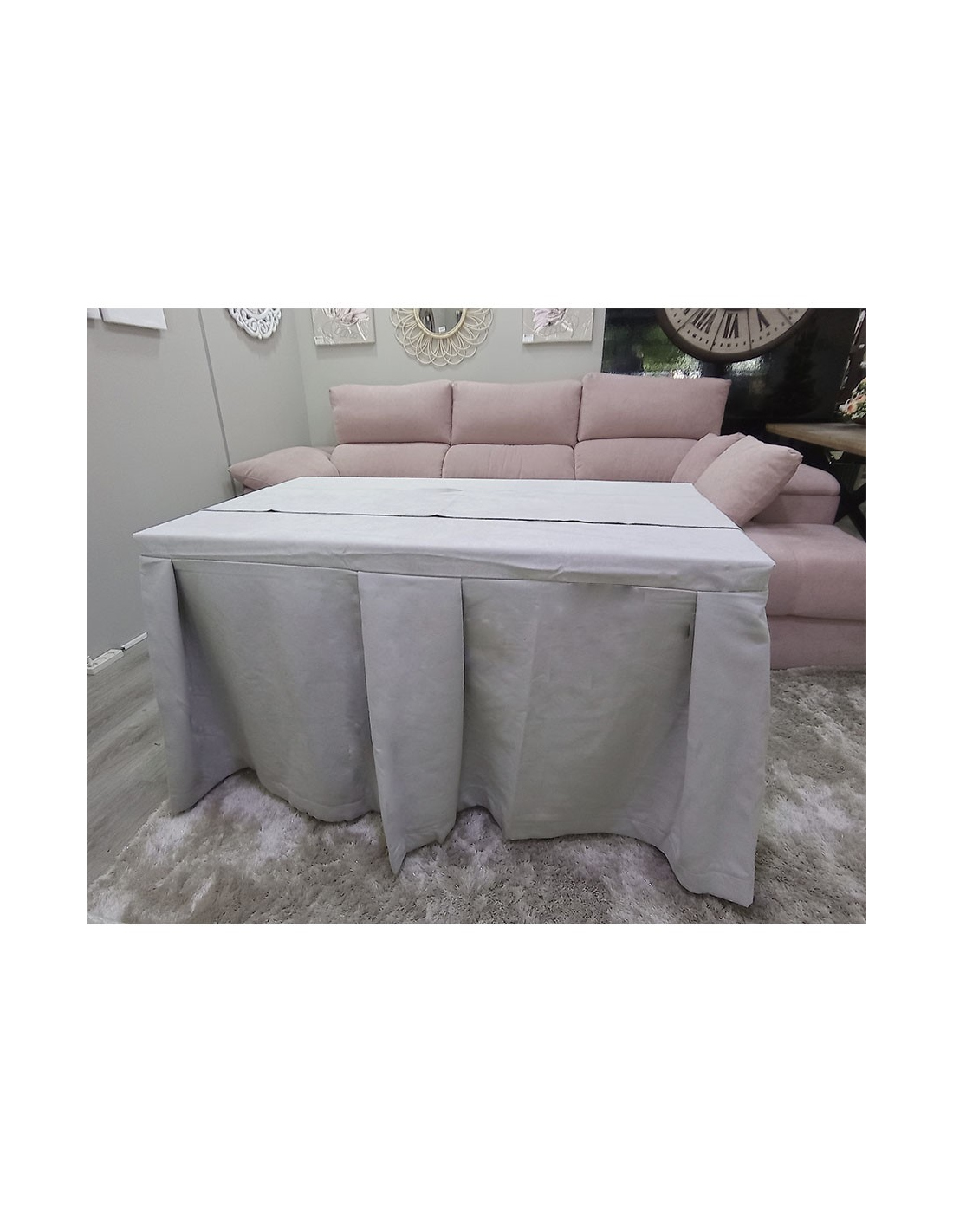 Vista su mesa de camilla con esta ropa de gran calidad y diseño italiano. Su tejido antimanchas le dará tranquilidad en el caso de que tenga pequeños o mascotas en casa. Esto se debe al uso de Teflón para su elaboración, permitiendo que este tipo de enaguas repelan todo tipo de líquidos y evitando, de esta manera, que la mancha llegue a quedarse impregnada en el tejido.