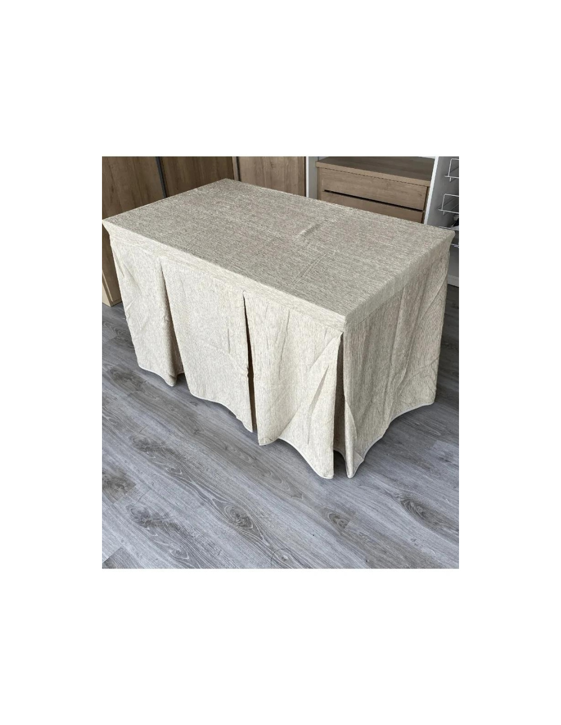 - Ropa de mesa tejida chenilla con 8 pliegues color Beige.