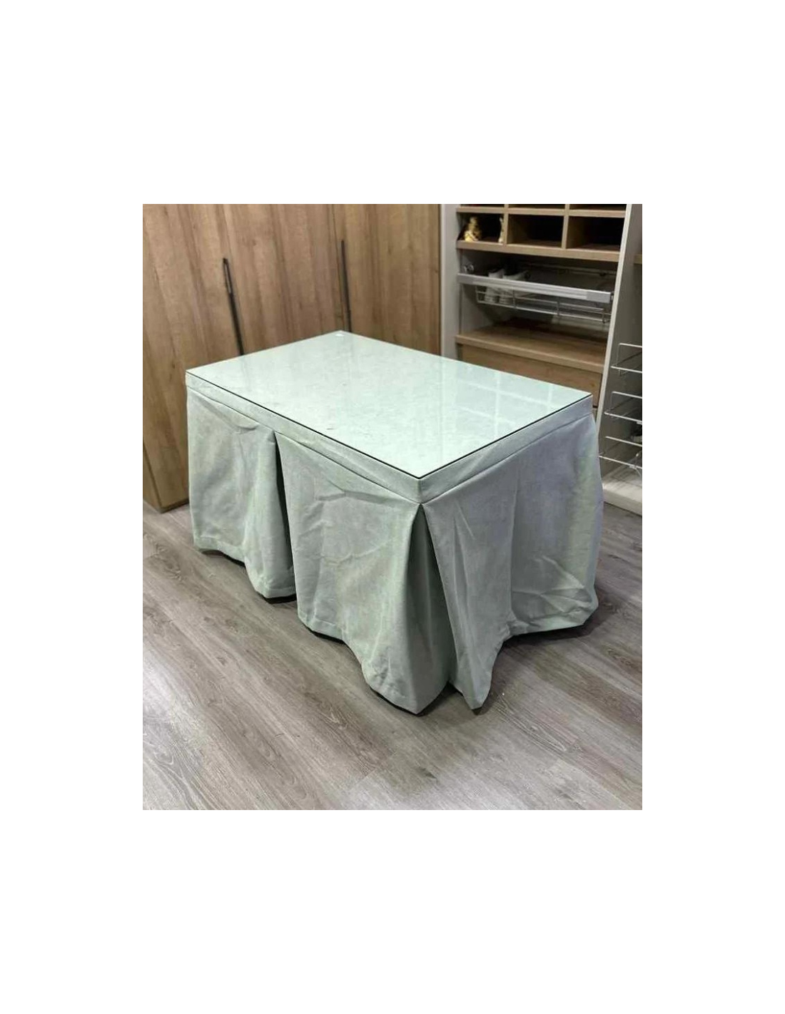 Mesa de Camilla con Brasero o Radiador + Ropa de mesa verde pastel + Cristal 6mm