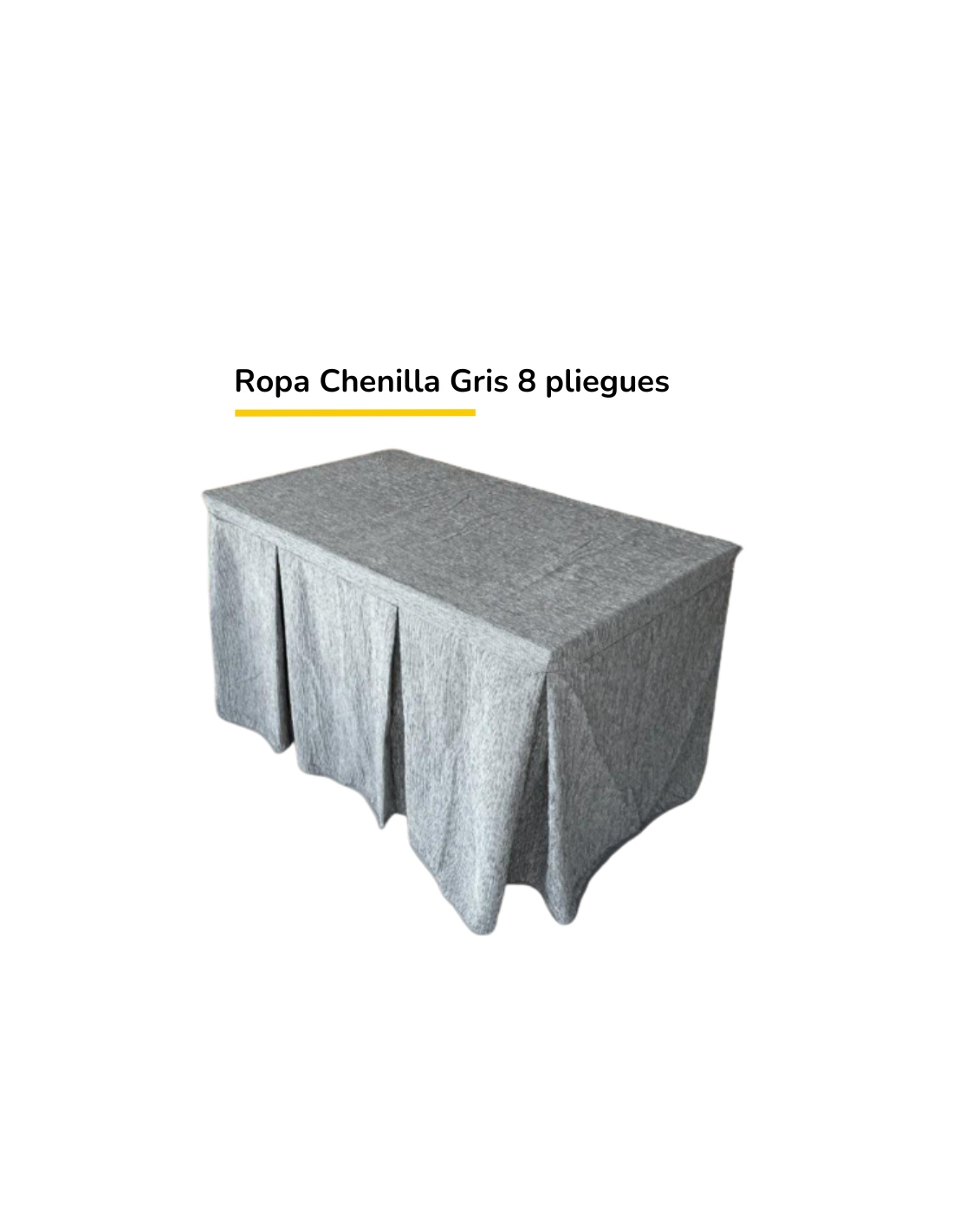 - Ropa de mesa tejida chenilla con 8 pliegues color gris.