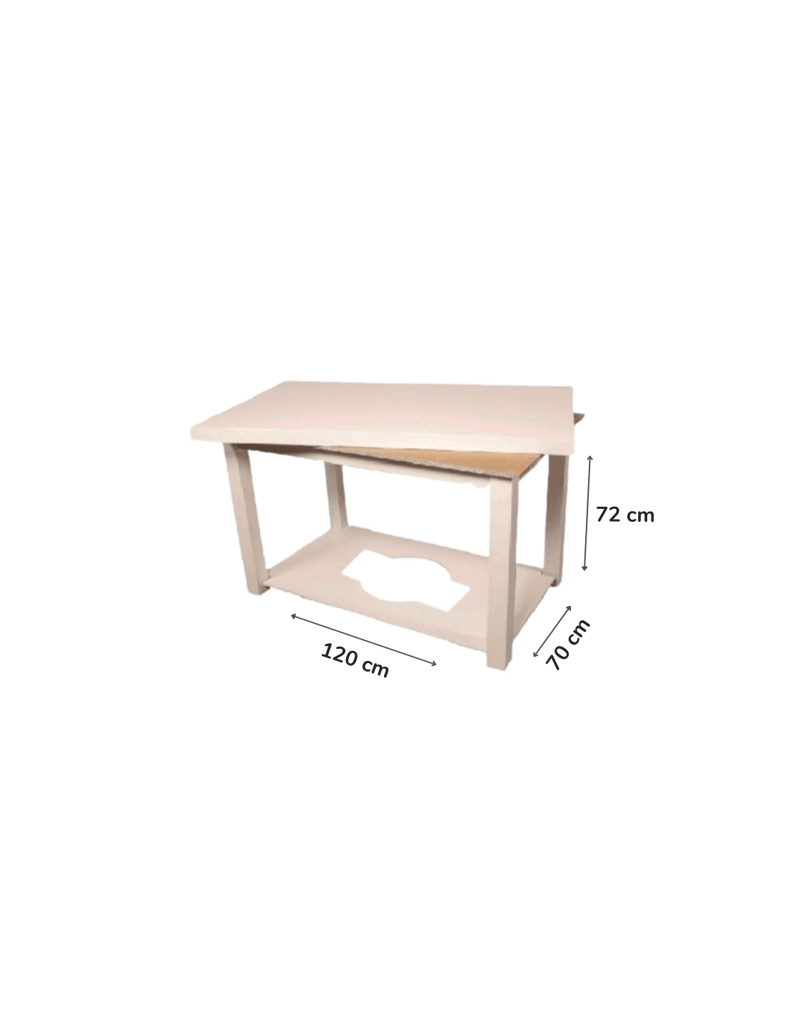 Mesa Camilla Rectangular Barnizada con Doble Tapa color Blanco Liso