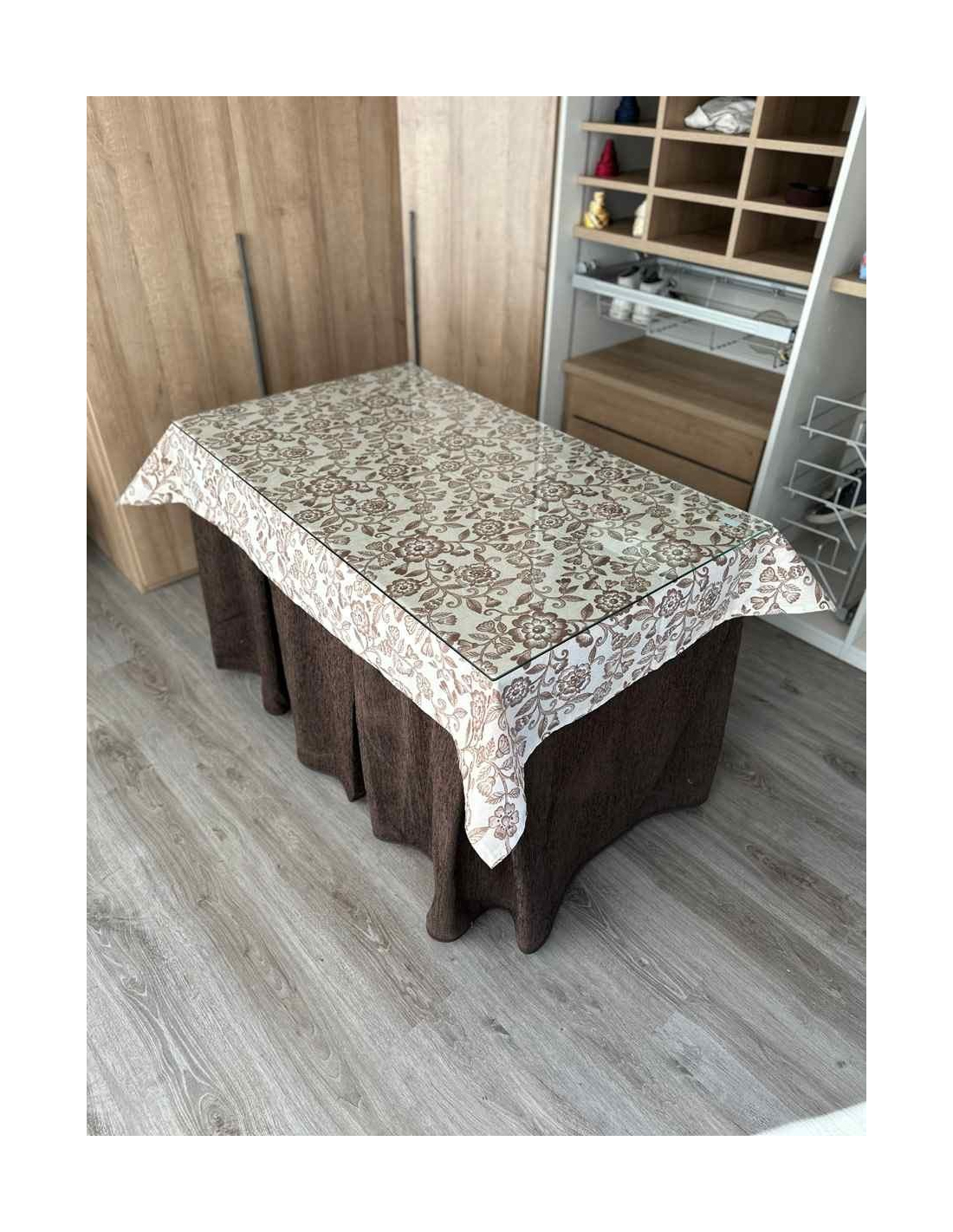 Disfruta la calidez de esta ropa de mesa camilla con tejido chenilla de 8-10 pliegues con tapete. Tacto suave y agradable, mantiene la temperatura facilitando el ahorro de consumo energético.