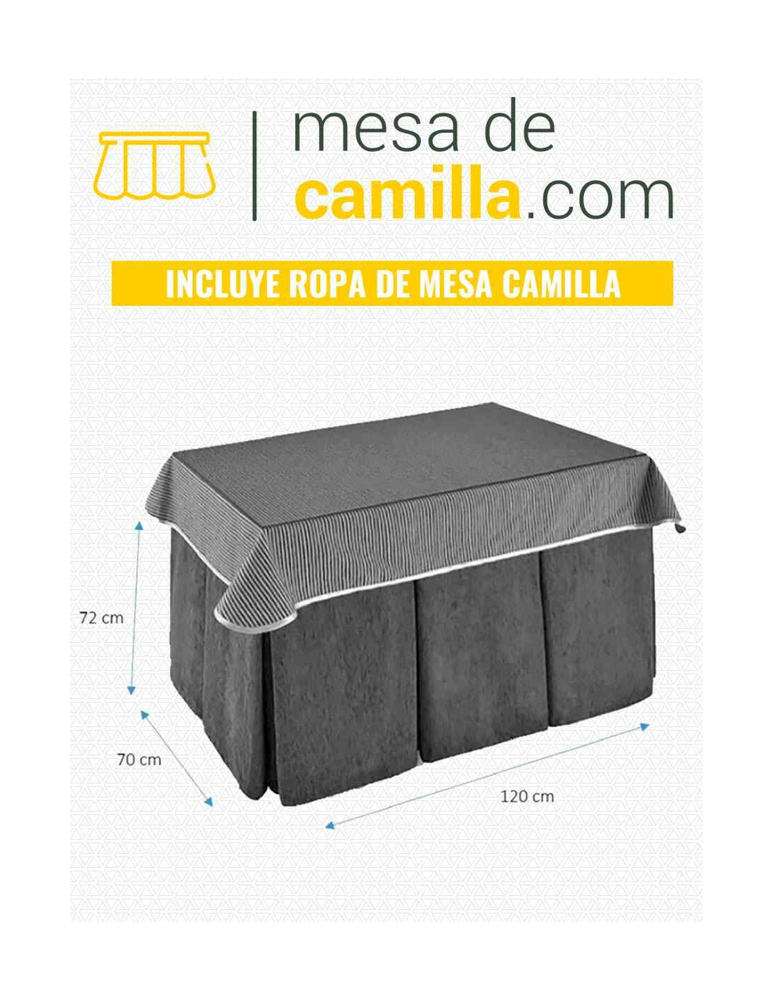 Disfruta la calidez de esta ropa de mesa camilla con tejido chenilla de 8-10 pliegues con tapete. Tacto suave y agradable, mantiene la temperatura facilitando el ahorro de consumo energético.