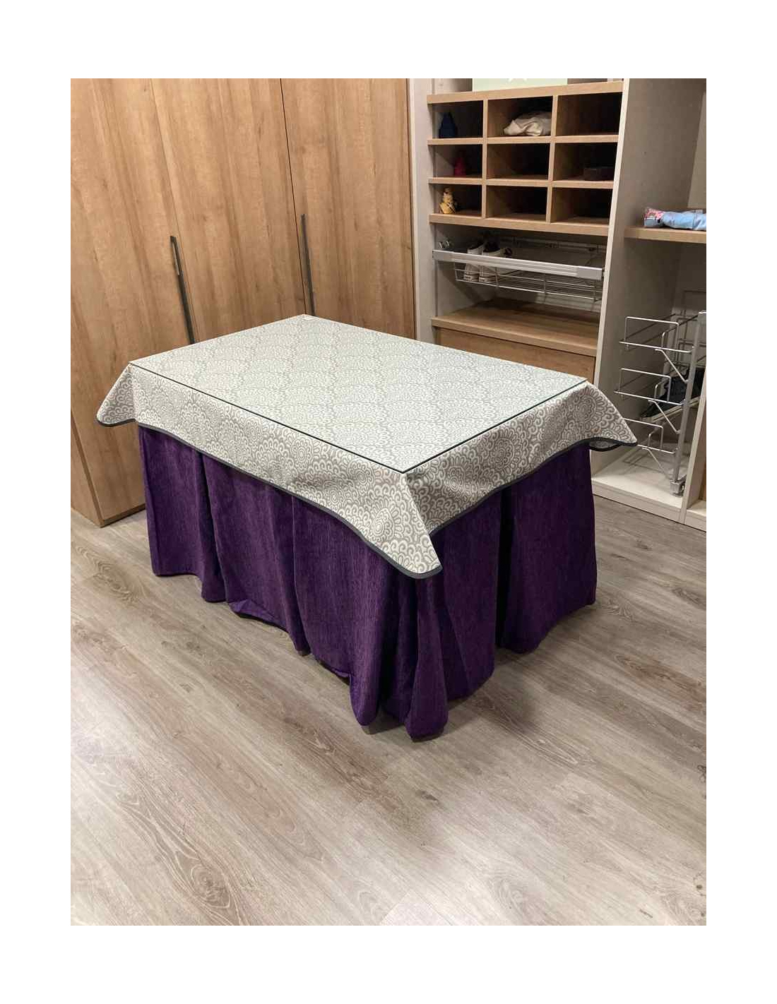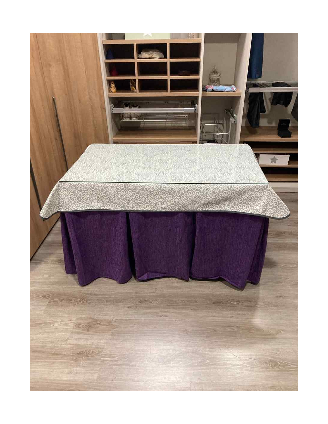 Ropa de Mesa Camilla Chenilla 8-10 Pliegues color Morado con Tapete Sol