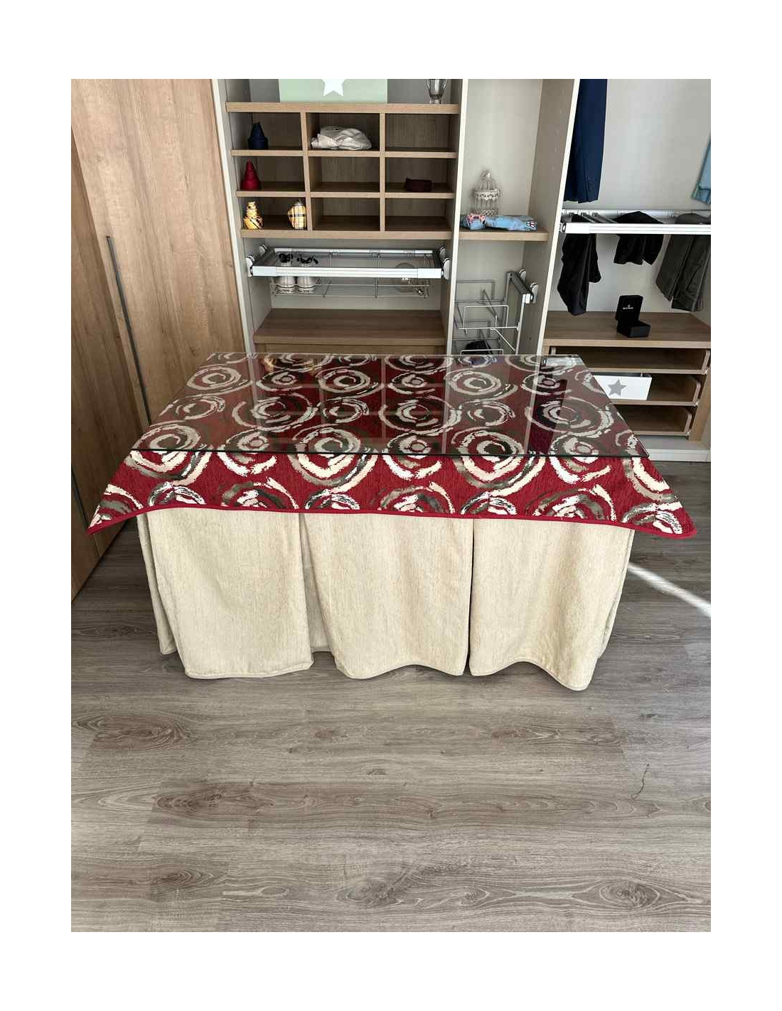 Experimenta la acogedora calidez de nuestra ropa de mesa camilla con tejido chenilla de 8-10 pliegues, completa con un suave tapete. El suave y agradable tacto de esta prenda no solo te envuelve en comodidad, sino que también ayuda a mantener una temperatura confortable, lo que se traduce en ahorro de energía. ¡Descubre el confort que cuida de tu bolsillo y del medio ambiente!
