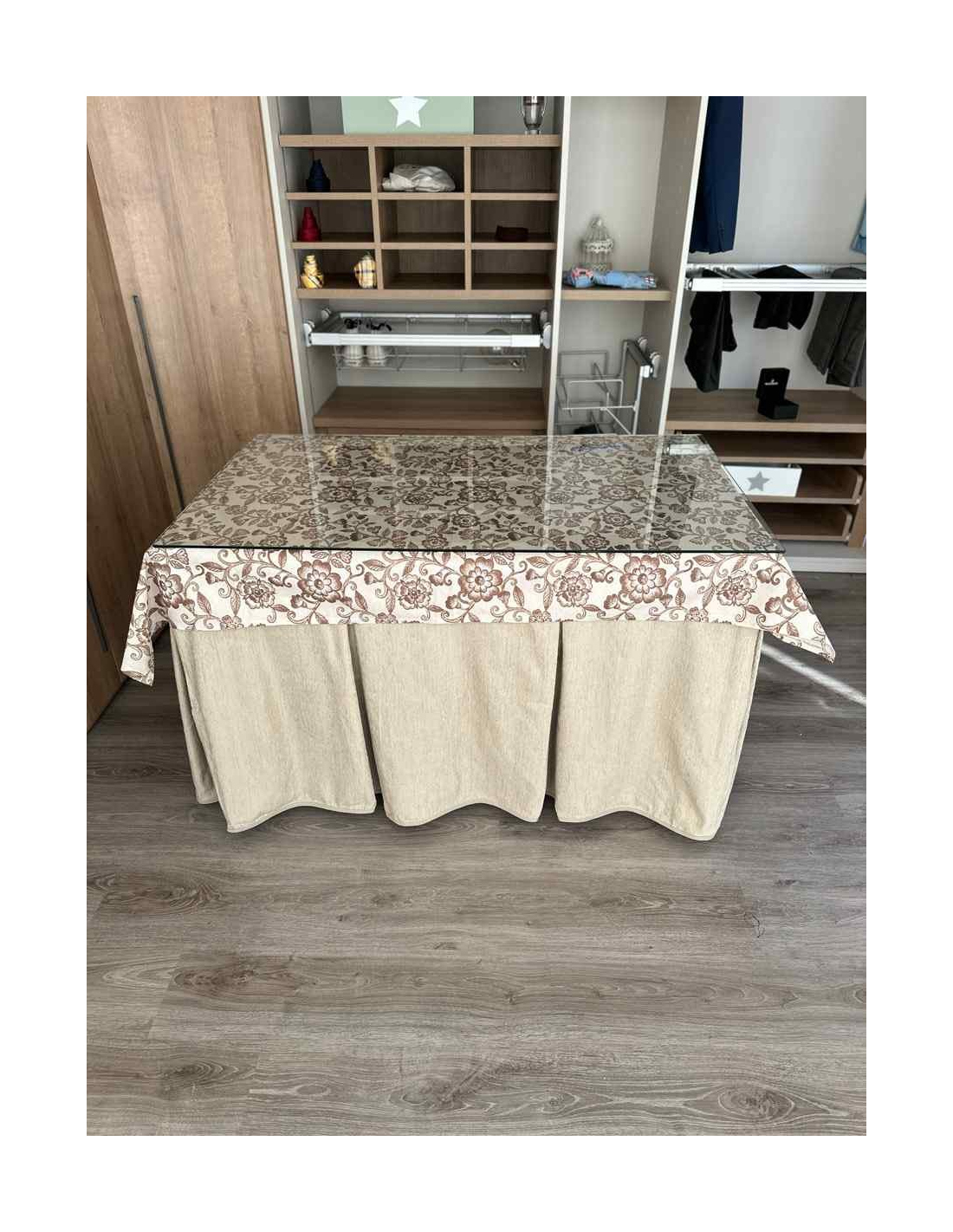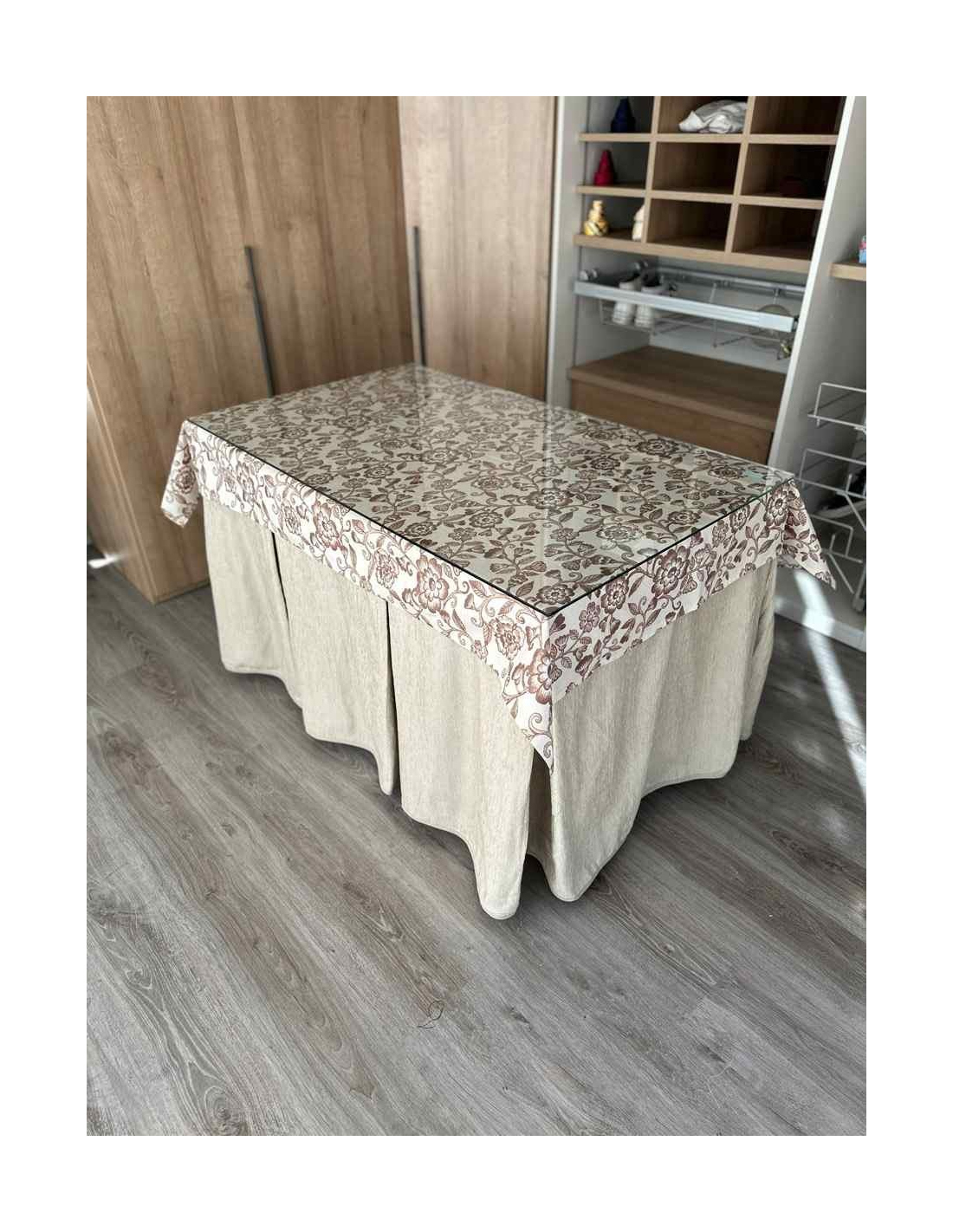 Siente la comodidad de esta falda de mesa de camilla confeccionada en chenilla de ocho pliegues, que además incluye un tapete. Su textura suave y agradable no solo te brindará confort, sino que también ayudará a mantener la temperatura ambiente, contribuyendo a un menor consumo energético en tu hogar.