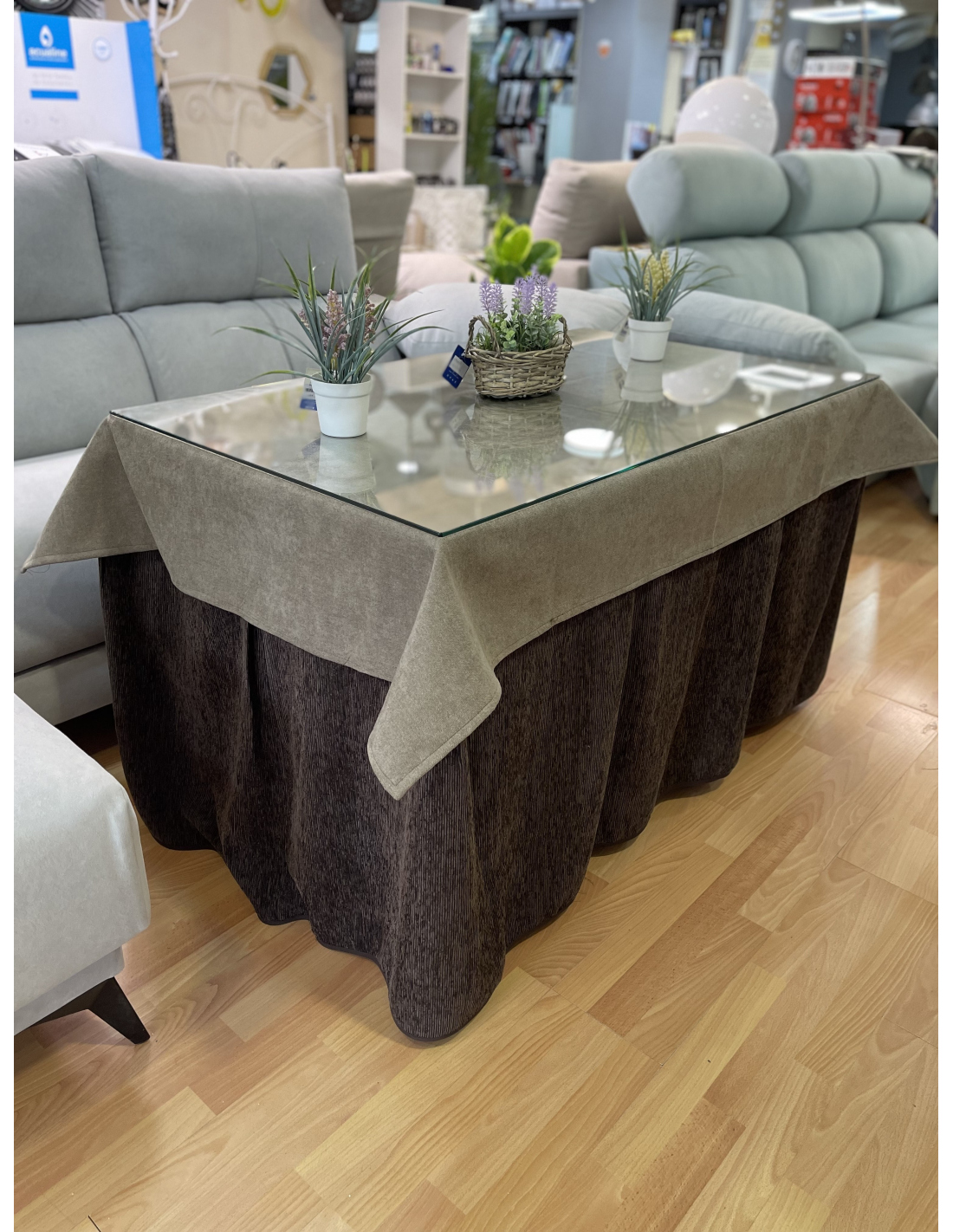 Descubre la comodidad de esta falda de mesa camilla, confeccionado en chenilla de ocho pliegues. Con su textura suave y agradable, no solo te mantendrá cómodo, sino que también te ayudará a ahorrar en tu factura de energía.