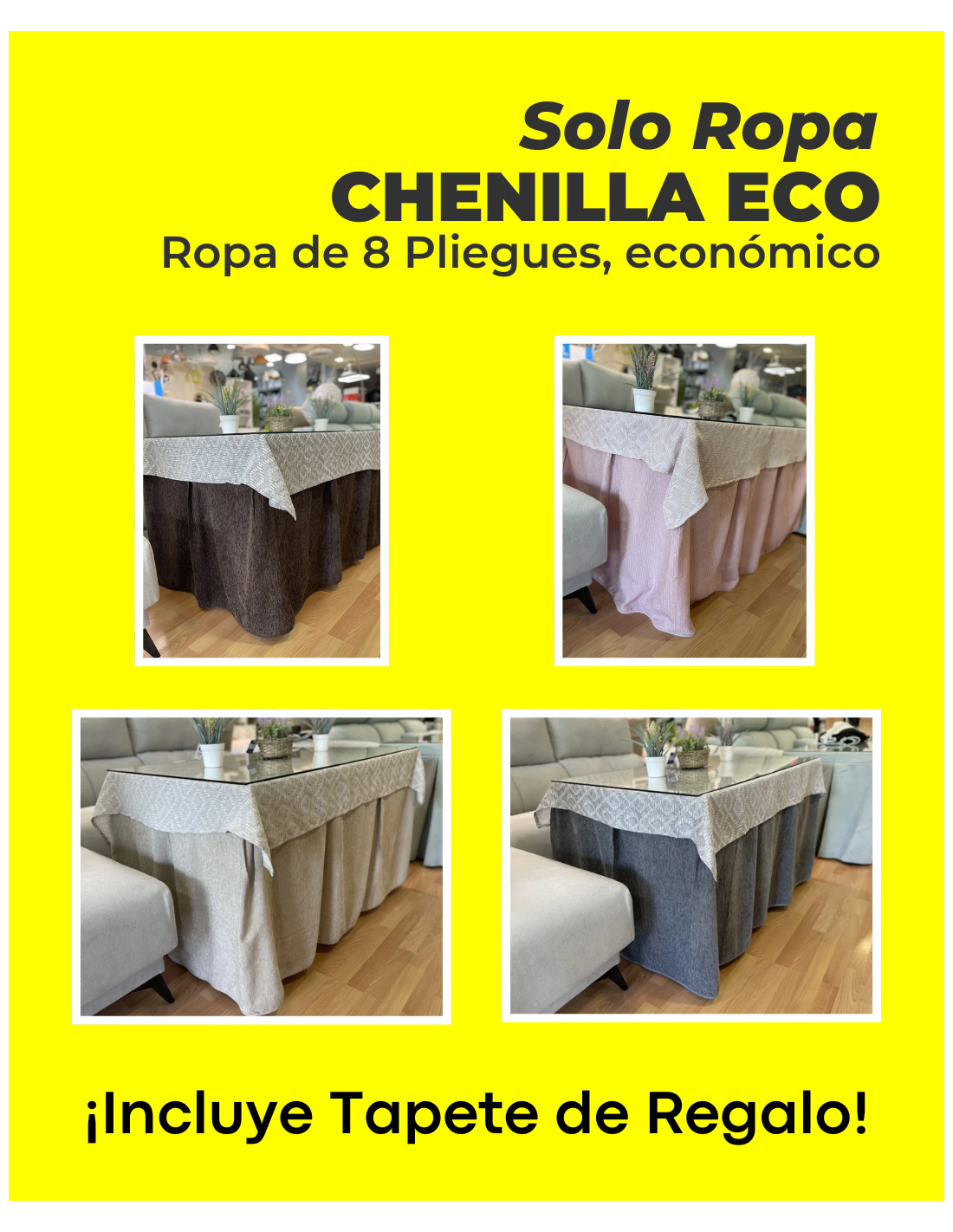 Ropa Chenilla Eco 8 Pliegues Colores Variados (Incluye tapete de regalo)