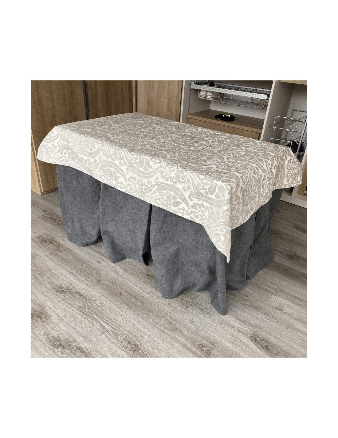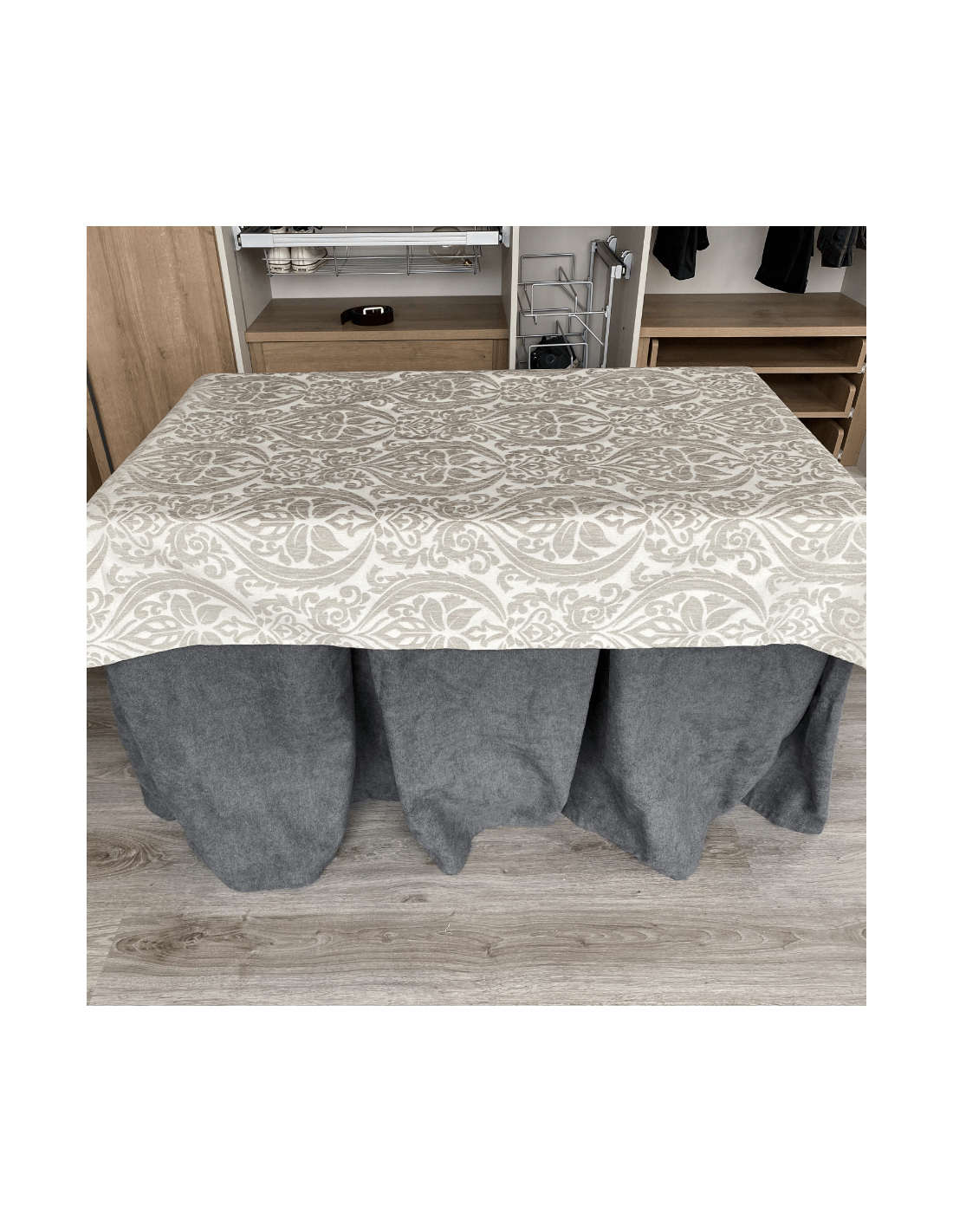 Ropa de Mesa Camilla Antimanchas Aterciopelada Triple Grueso Gris con Tapete Amaranto Gris REFORZADA 10 pliegues profundos