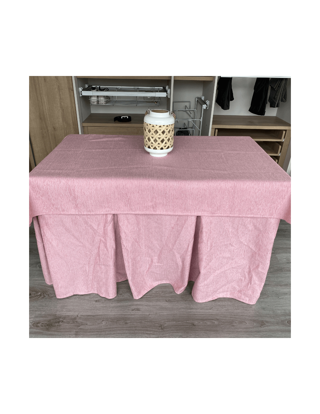 Ropa de Mesa Camilla Elegante 10 Pliegues Reforzada color Rosa con Tapete Miranda Multimedida