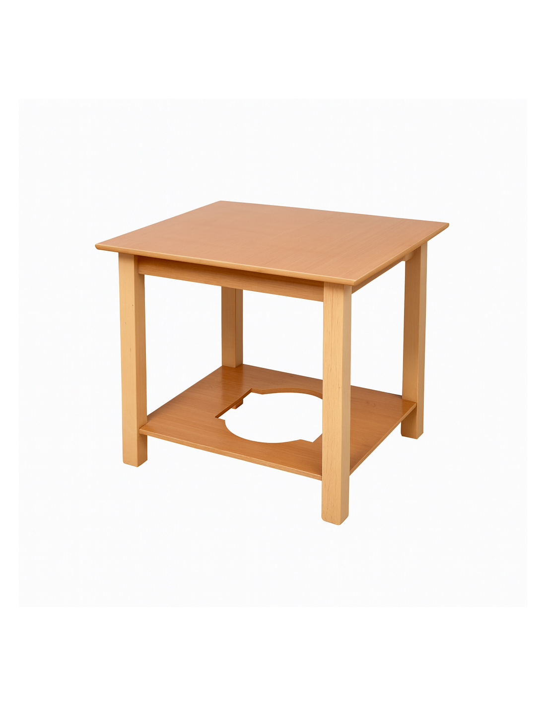 Mesa de camilla robusta con superficie cuadrada de madera maciza