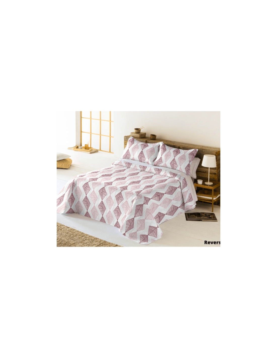 Colcha bouti Durango reversible, ideal para el verano, presenta un estampado juvenil de rombos en tonos grises. Su acabado termosellado garantiza calidad y durabilidad.