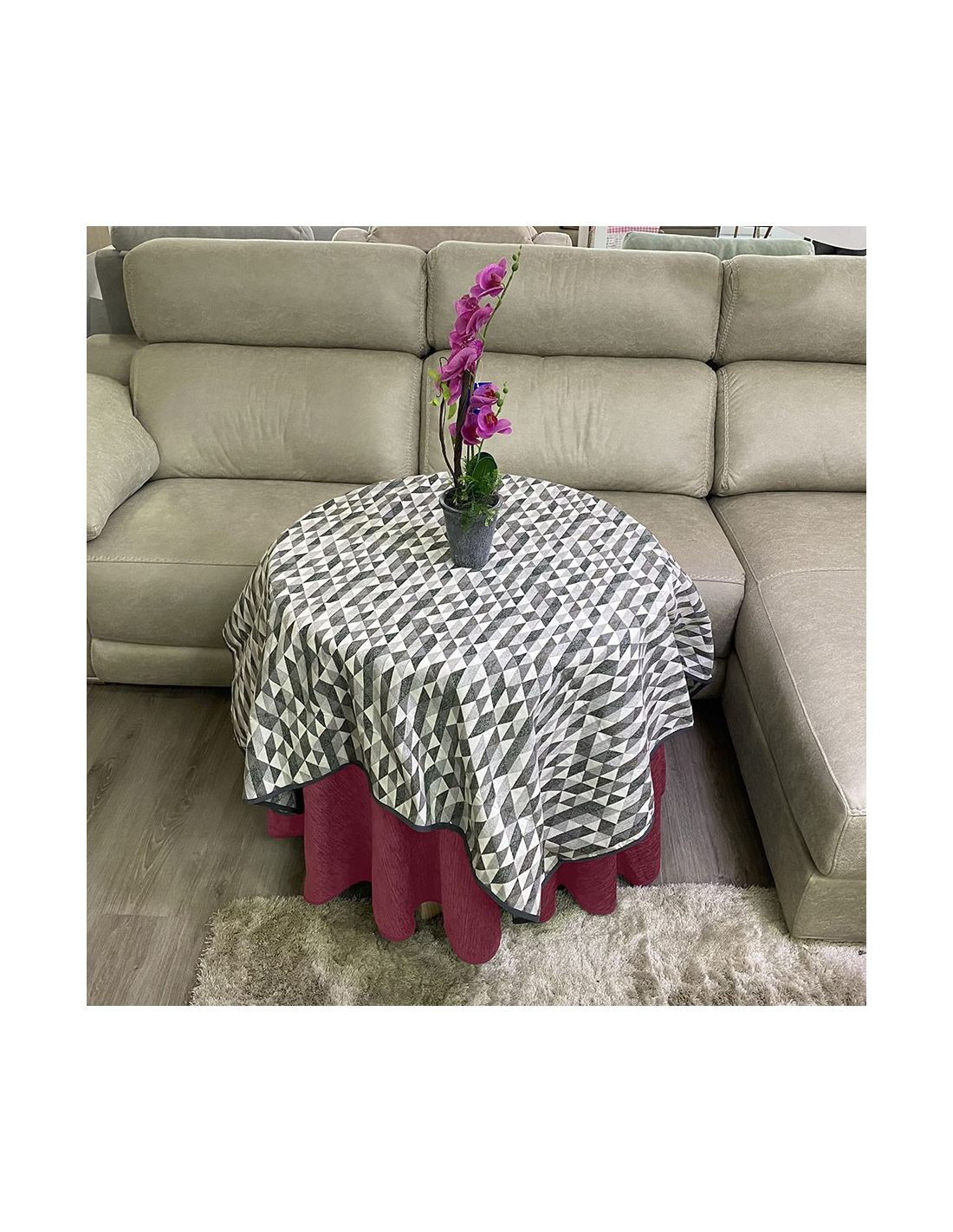 Disfruta la calidez de esta ropa de mesa camilla redondo con tejido chenilla de gran calidad en color rosa salmón con tapete diseño picasso y costuras reforzadas para mayor durabilidad. Tacto suave y agradable, mantiene la temperatura facilitando el ahorro de consumo energético.